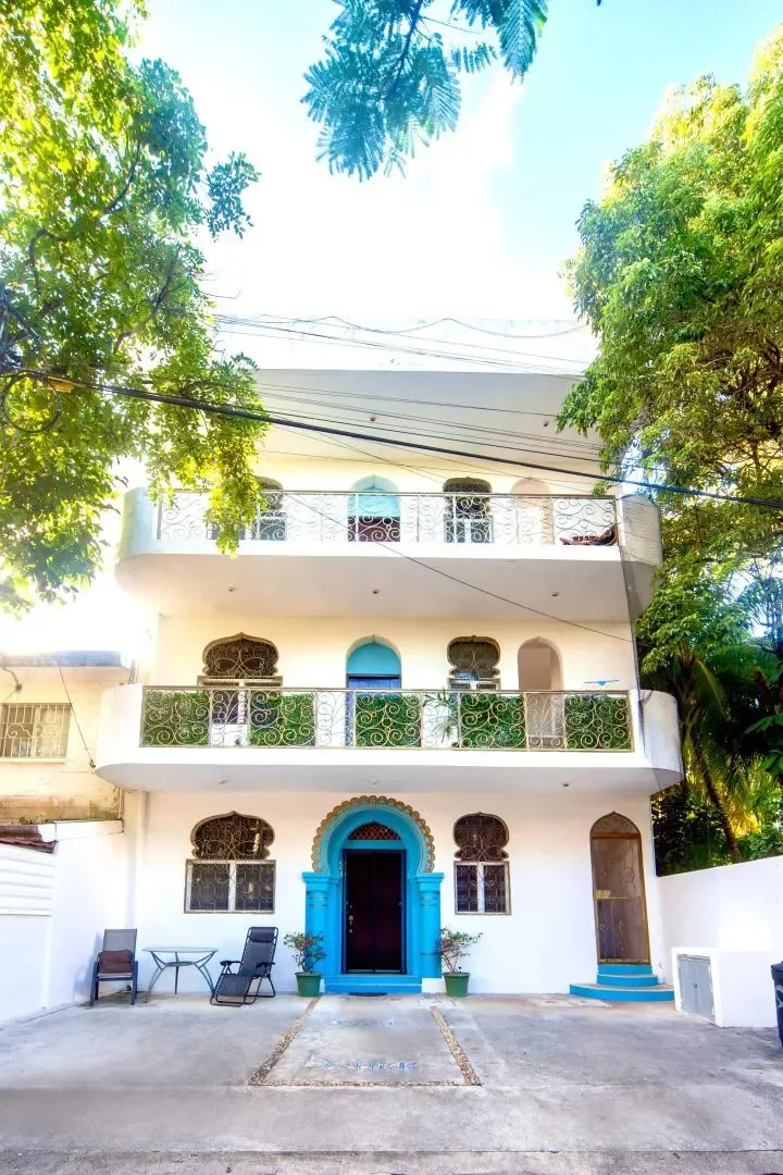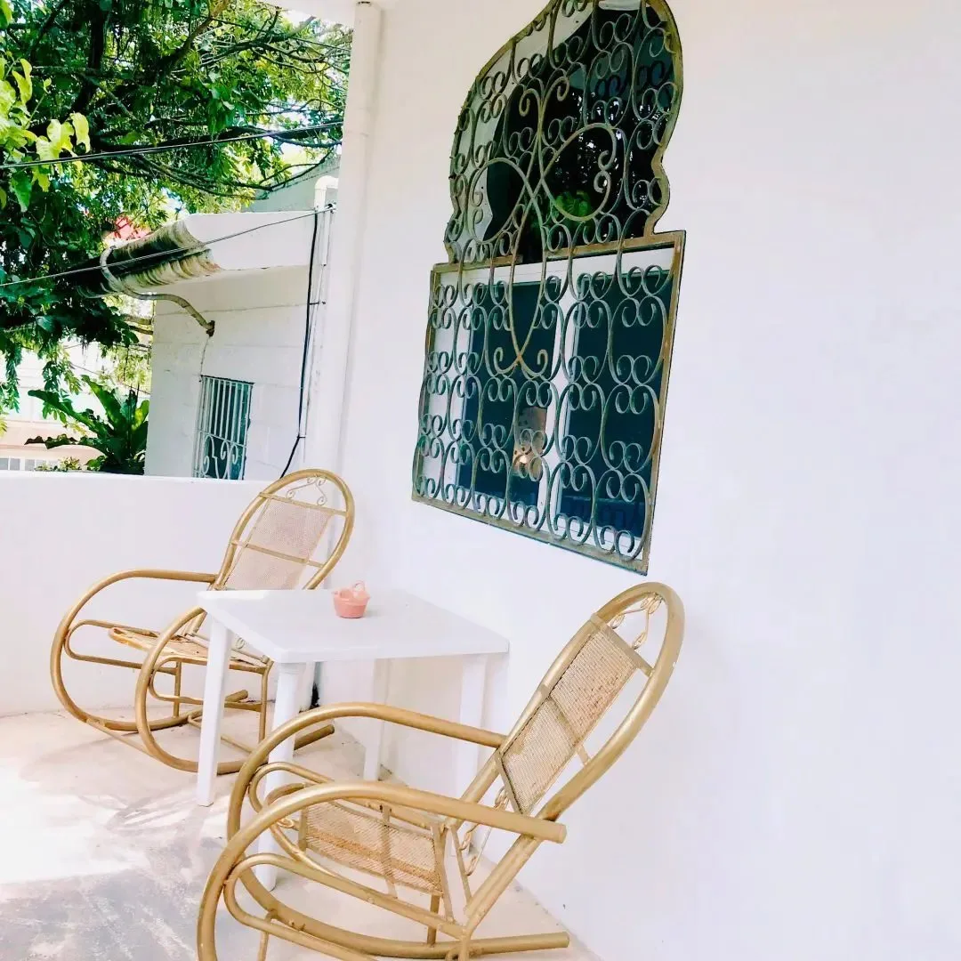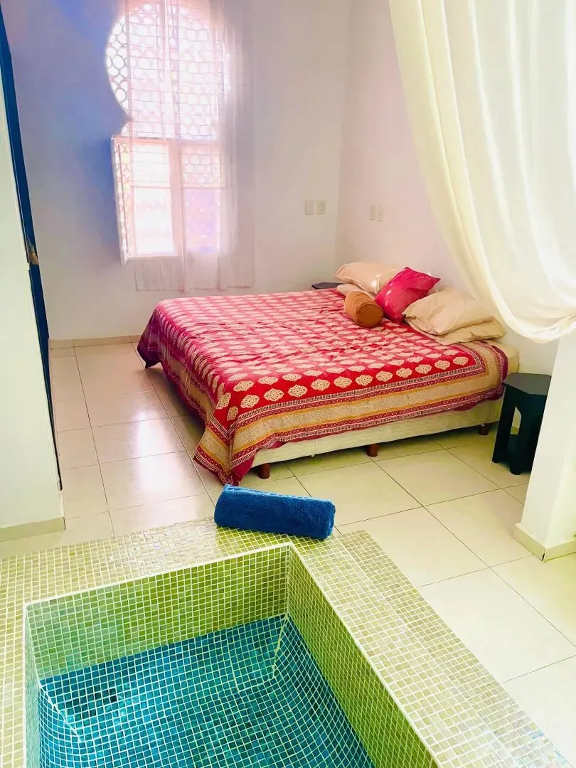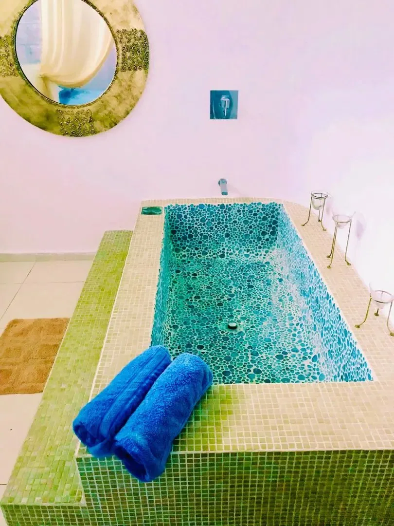 The three-level apartment building contains one residence per floor, each approximately 106 square meters. Each apartment offers two bedrooms, two bathrooms, and complete privacy. The design is Moroccan-inspired, with handcrafted mosaic details and bathtubs finished with imported Italian tile.