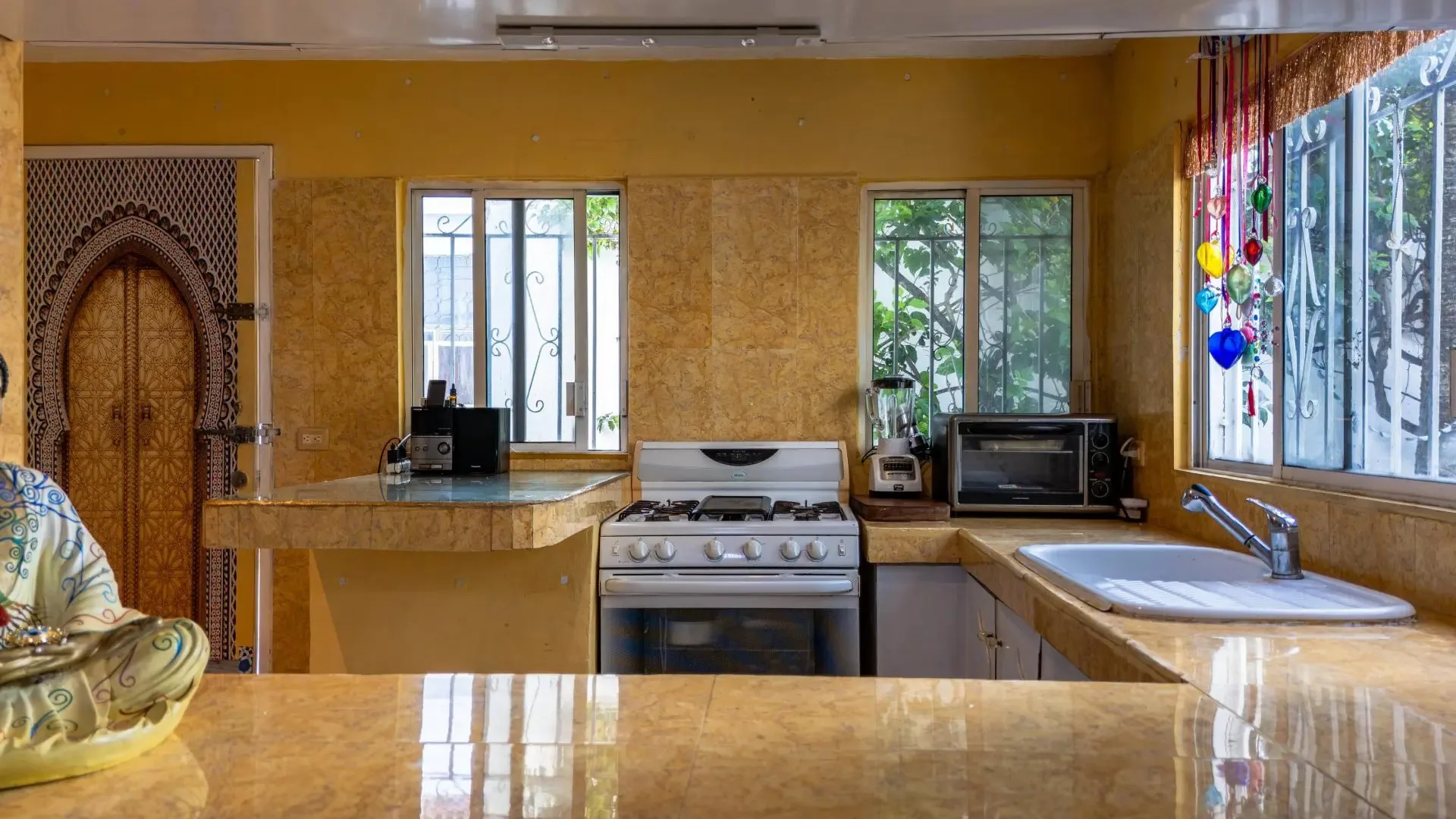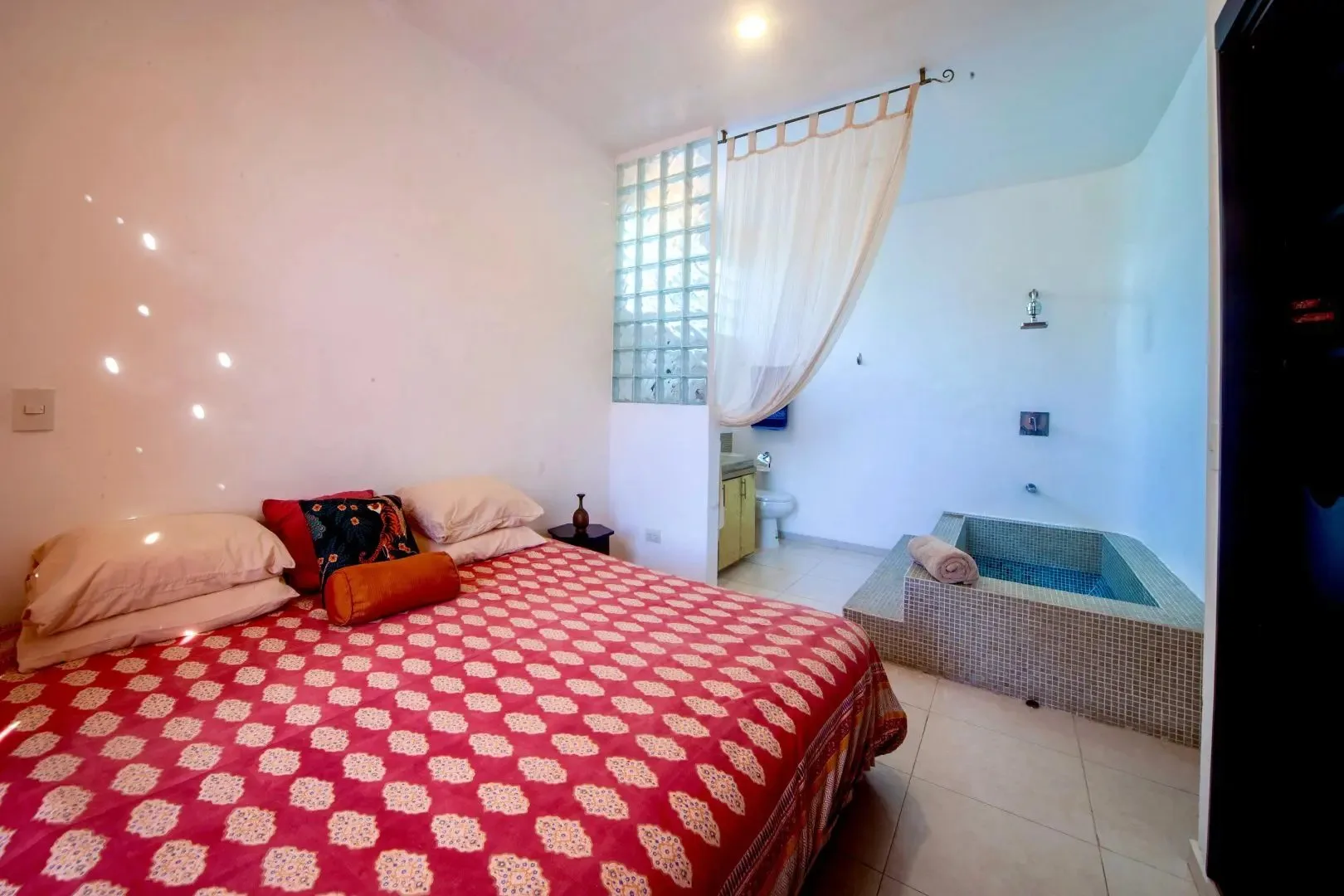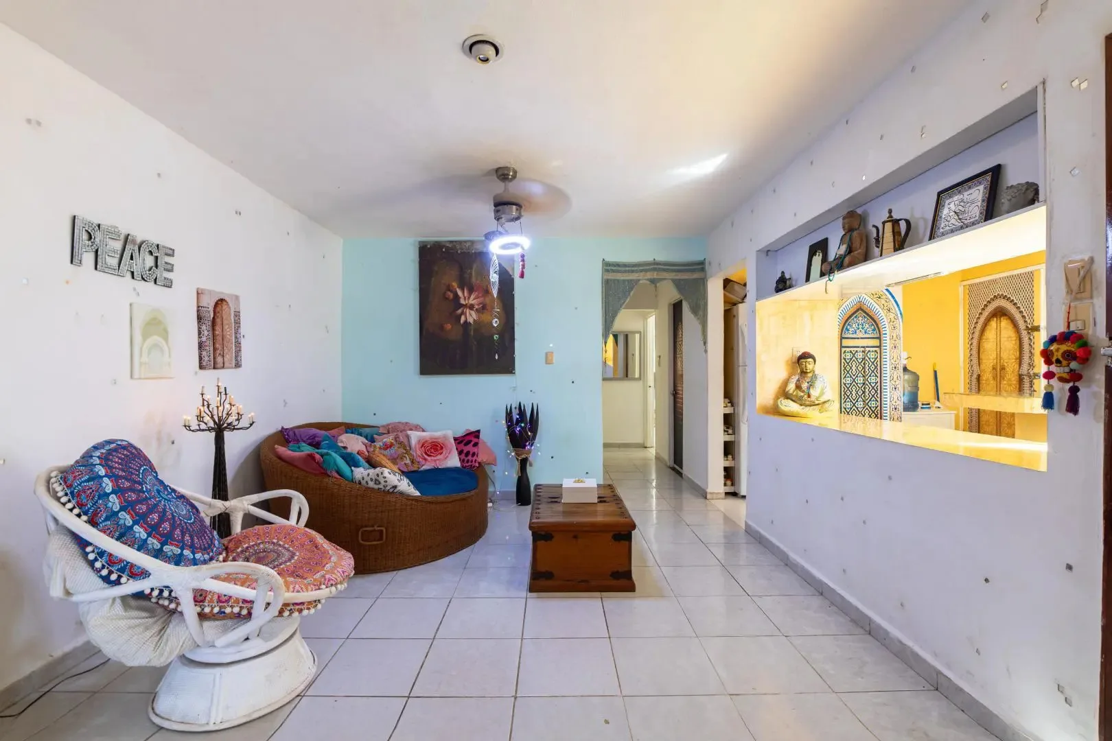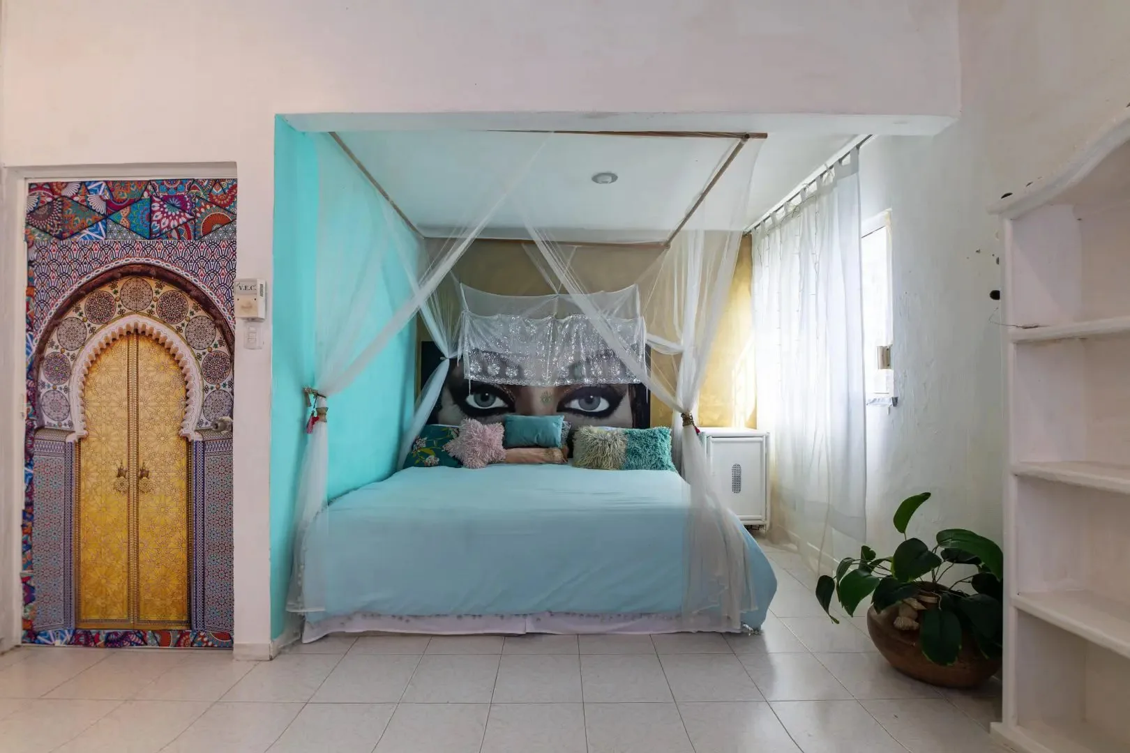 The three-level apartment building contains one residence per floor, each approximately 106 square meters. Each apartment offers two bedrooms, two bathrooms, and complete privacy. The design is Moroccan-inspired, with handcrafted mosaic details and bathtubs finished with imported Italian tile.