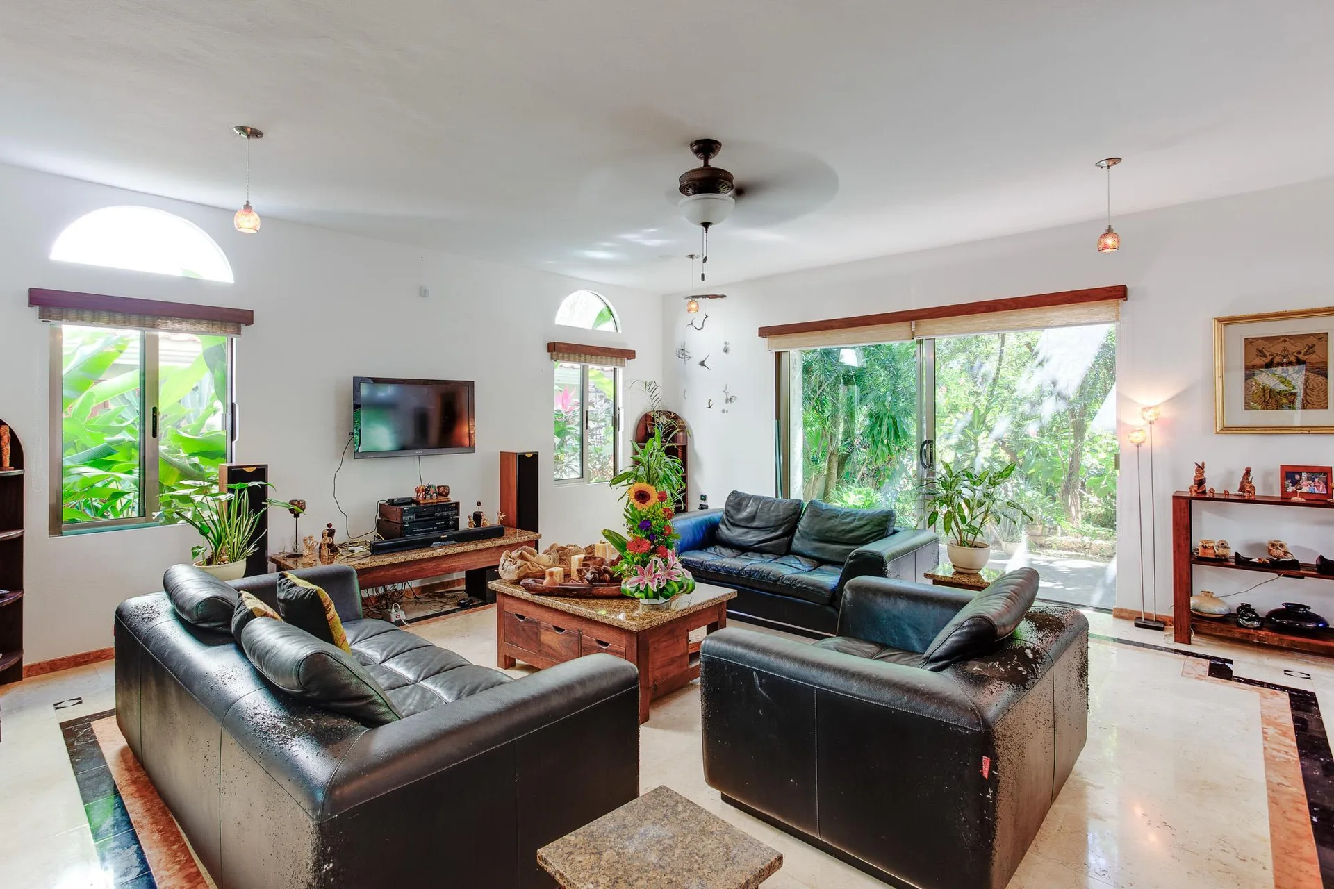 The solid construction features a concrete block structure, hurricane-resistant windows with laminated glass, and high-security locks. The property includes an efficiency system with 12 solar panels, a 12, 000-liter cistern, water softeners, and reverse osmosis filters. Comfort is provided by six mini-split air conditioning units and a central Trane air handler, along with a water heater. Advanced security includes a Honeywell alarm system with sensors and a closed-circuit system of HD security cameras.