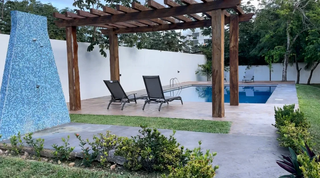 The neighborhood features avenues with walking paths and is near shopping centers, a school zone, and public transportation. Xcalacoco beach is a few minutes away, and the airport is approximately 30 minutes distant.