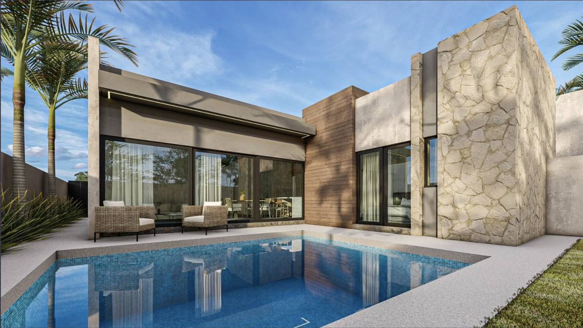 A private swimming pool is situated on the grounds. The community provides shared amenities and is known for its safety and tranquility.