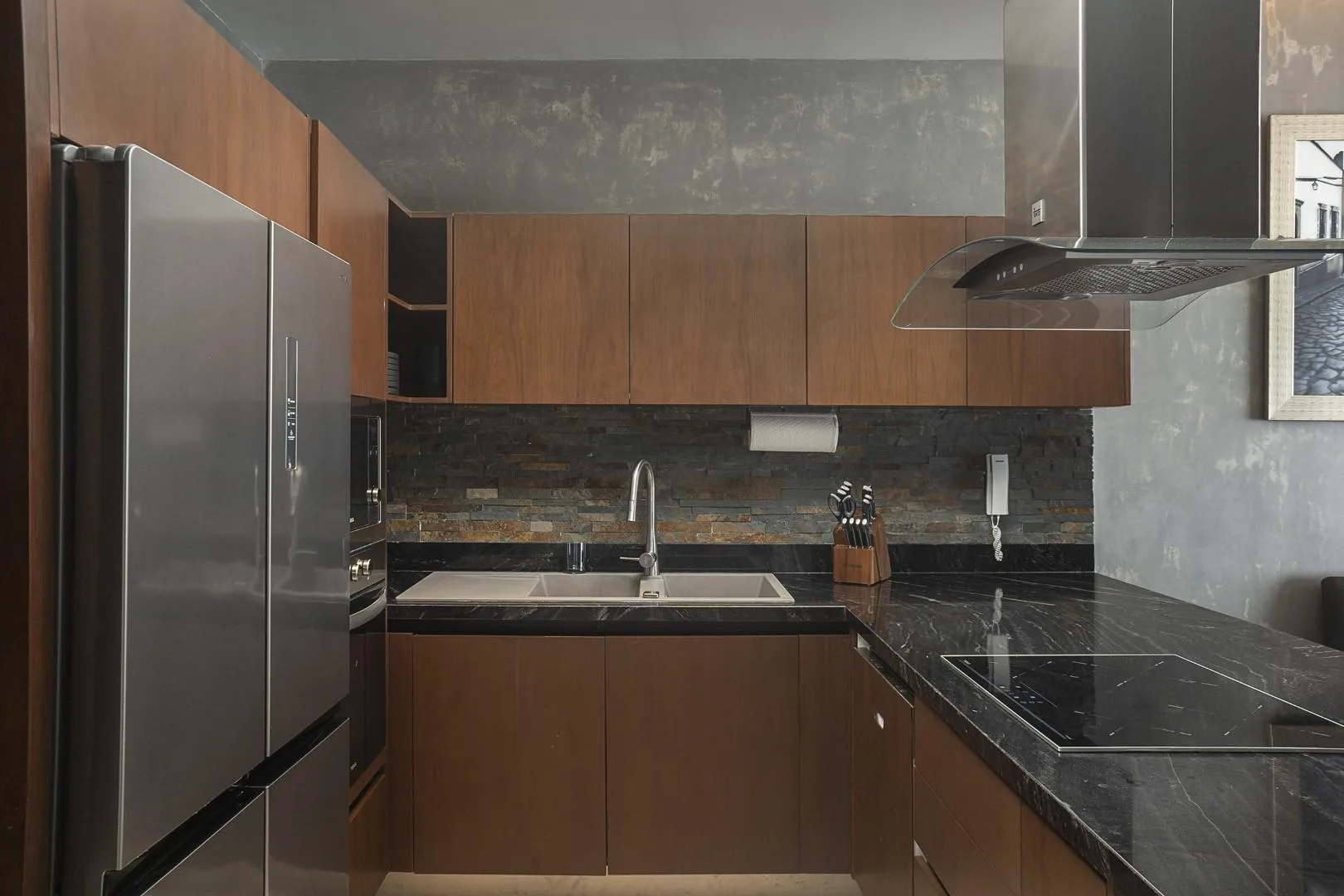 The property is located just steps from the beach and Playa del Carmen's vibrant 5th Avenue. It is fully furnished, with all major furniture and custom interior elements included.