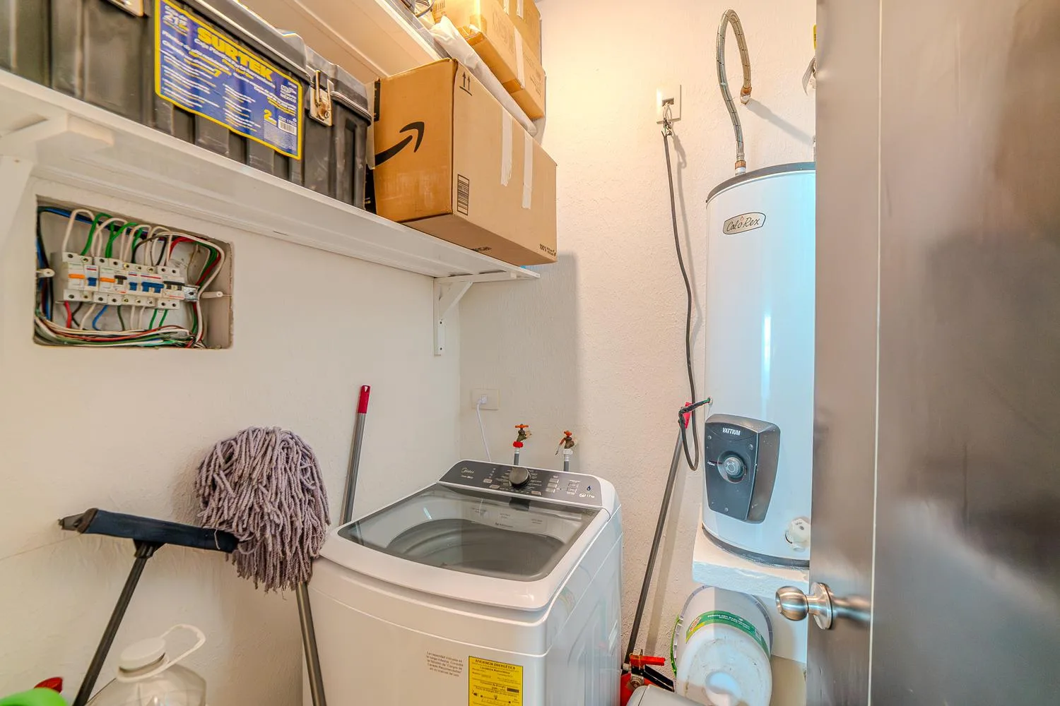 There are two and a half bathrooms equipped with eco-friendly amenities, hot water, hairdryers, and luxury towels. The kitchen was renovated in 2025 and includes a refrigerator, coffee maker, blender, microwave, toaster, electric stove, cookware, and glassware. A separate laundry room contains a new washing machine.