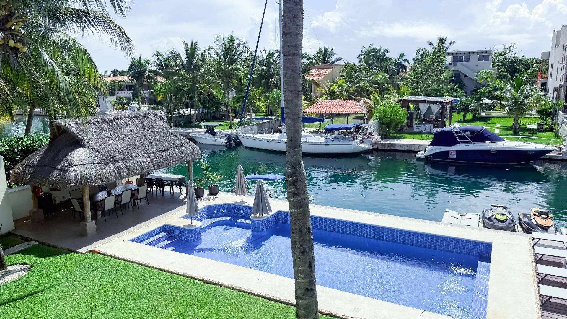 The secure gated community features lush gardens, a pool and palapa area, a private marina and yacht dock, and 24-hour security. It is situated just steps away from the beach, restaurants, and shopping.