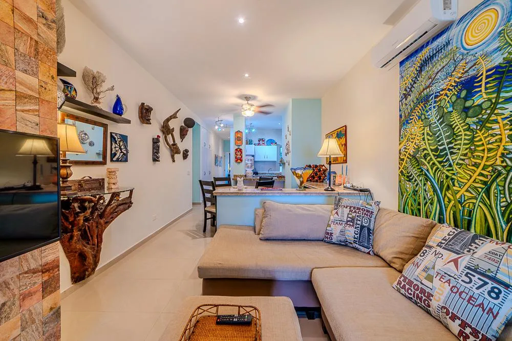 Optical fiber internet serves both the units and the pool area. The building features an incredible pool, a waterfall, and a shaded garden on the ground level for all residents to enjoy. There is a large palapa for entertaining, a barbecue area, and a bar. The condominium association is well-managed. There is excellent 24-hour security and electronic gates controlling all access. The pool area is lively with activity, especially during the season, and generally caters to a middle-aged, international group, so it is never excessively loud. Quiet hours begin after 11 PM.