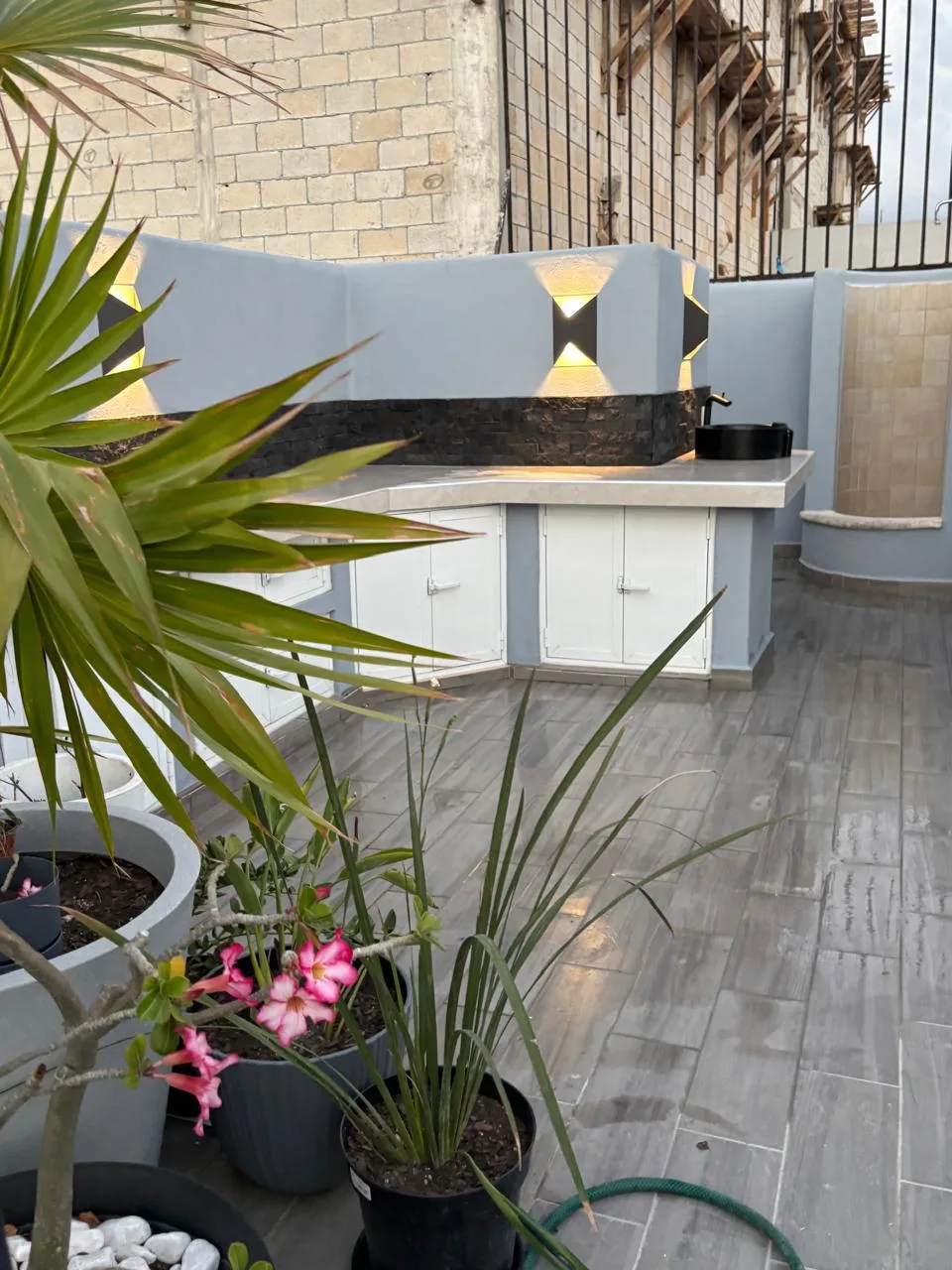 A large private rooftop terrace is equipped with a plunge pool and offers cityscape views. The terrace includes solar panels.