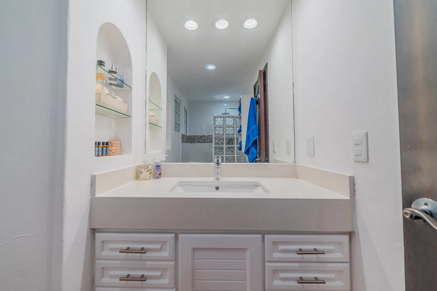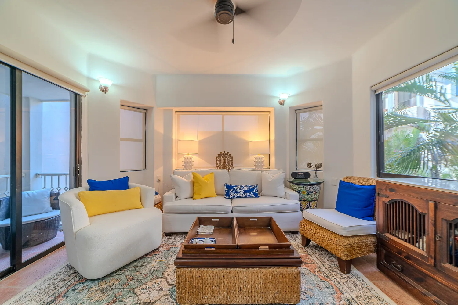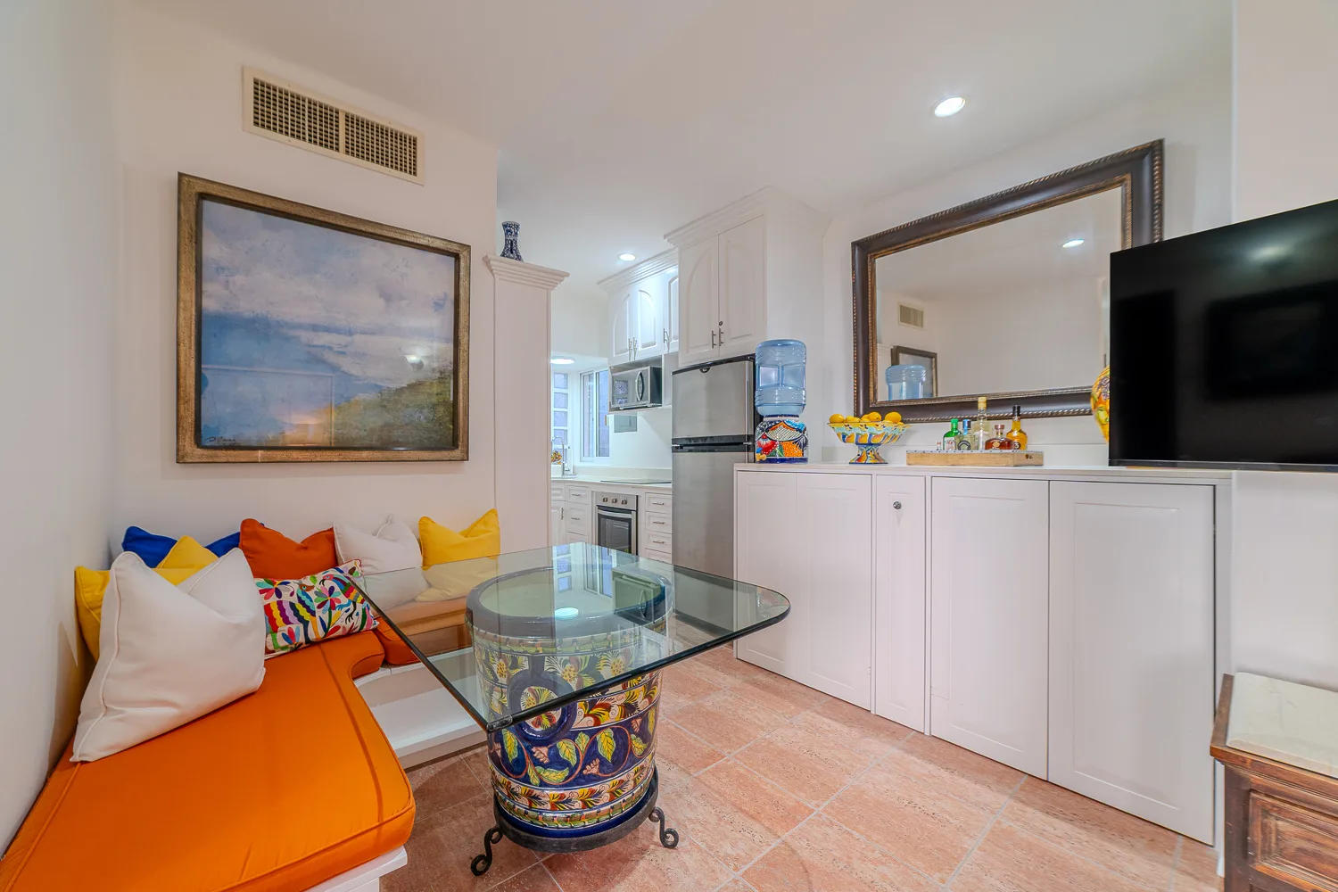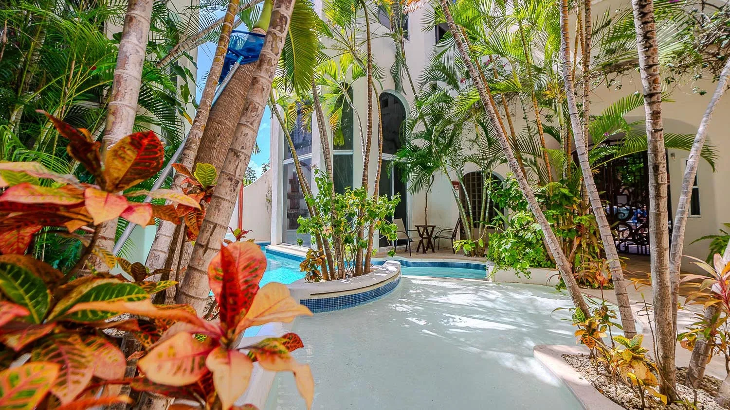This furnished, turn-key one-bedroom condominium is located on the top floor of the building. It is situated on 26th Street North, between Fifth Avenue and First Avenue, in a central area of Playa del Carmen. The location is just three blocks from Mamitas Beach and is within steps of restaurants, shops, and all amenities.
