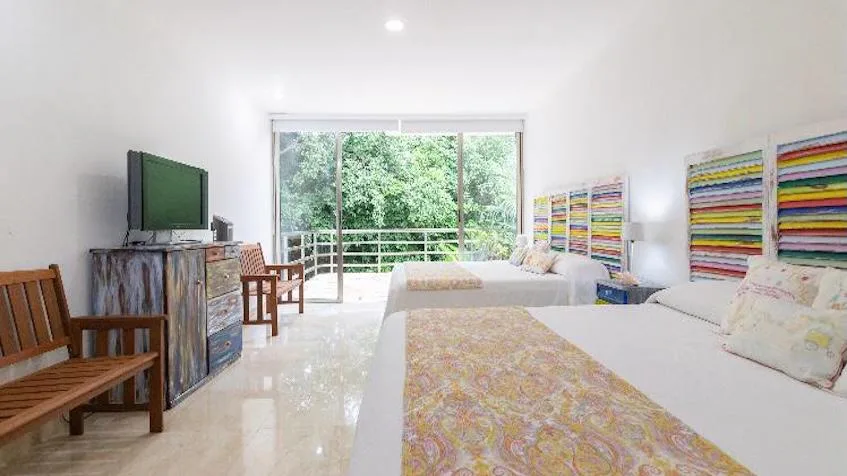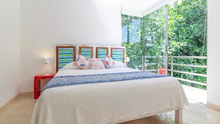 The residence is situated on Paseo Xaman-ha in Playacar, a short 250-meter walk from the beach. The location is near restaurants, shops, golf courses, and Fifth Avenue.