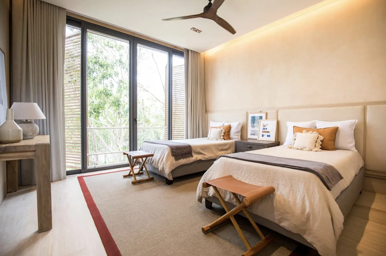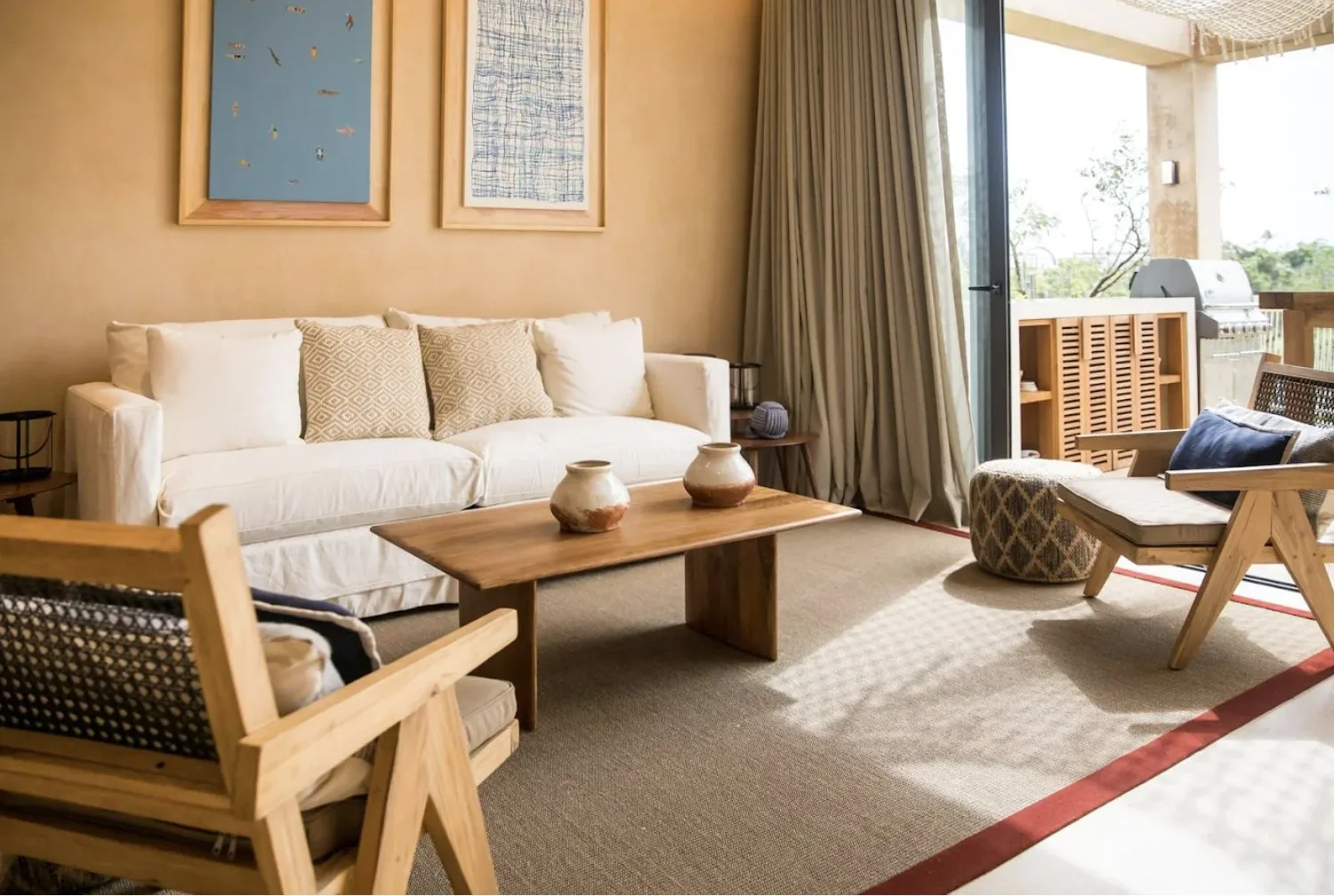 The villa faces the Gran Coyote Golf Course, providing an open view of greenery, a calm environment, and privacy. The residence also includes private beach access and 24-hour security with double access control. Residents have the option to join a Beach & Golf Club.