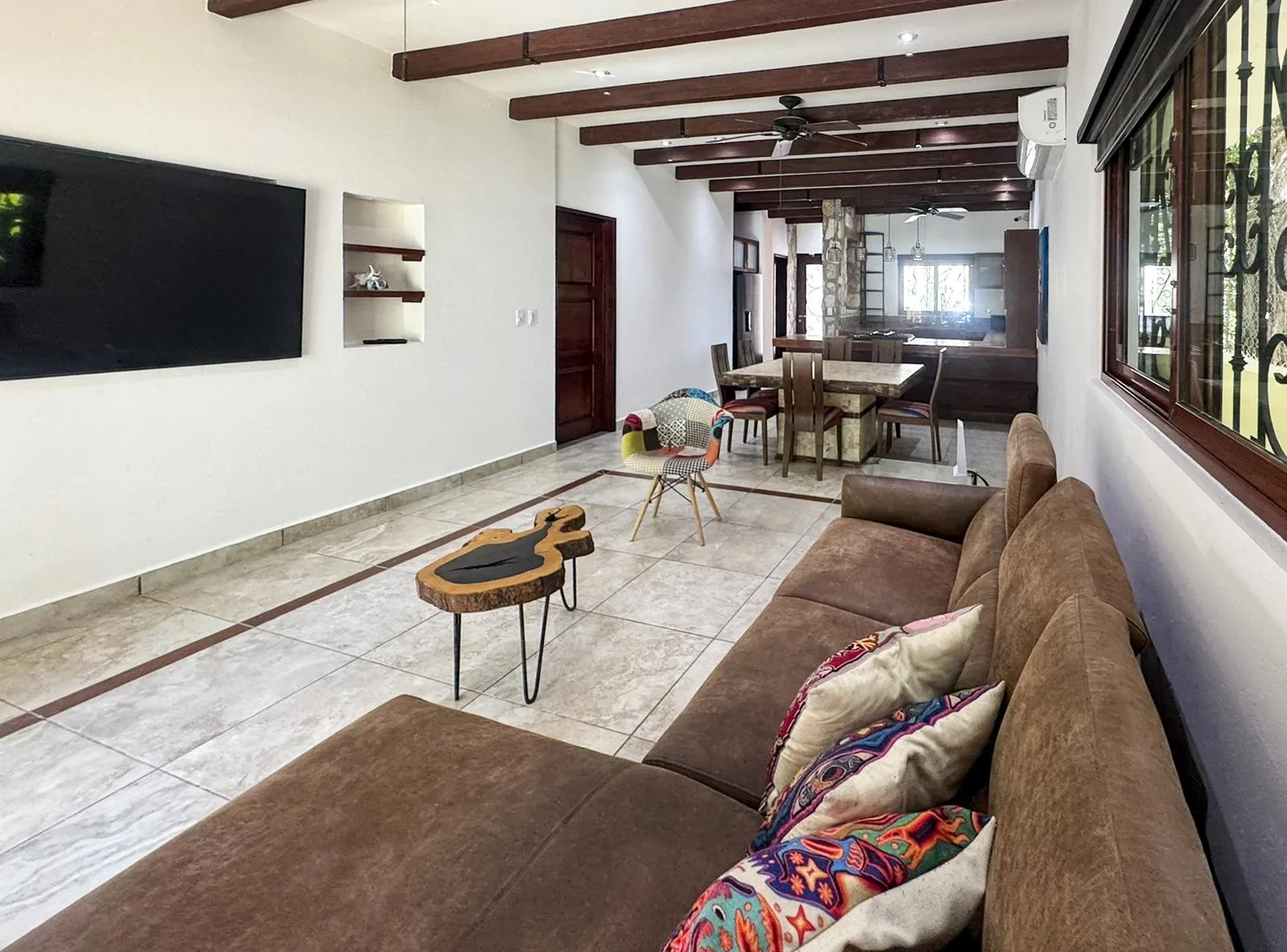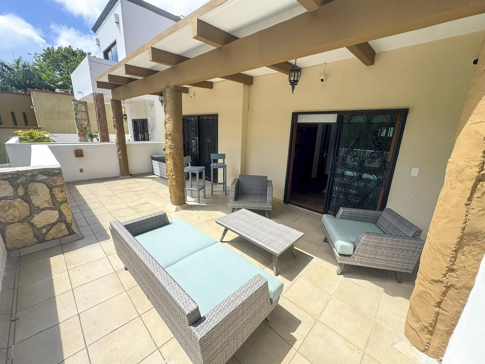 This charming hacienda-style home offers three bedrooms and three and a half bathrooms, located within the private residential community of El Cielo, north of Playa del Carmen's center. The property is fully furnished and equipped, recently painted inside and out, and presents a warm ambiance that blends traditional materials with contemporary touches.
