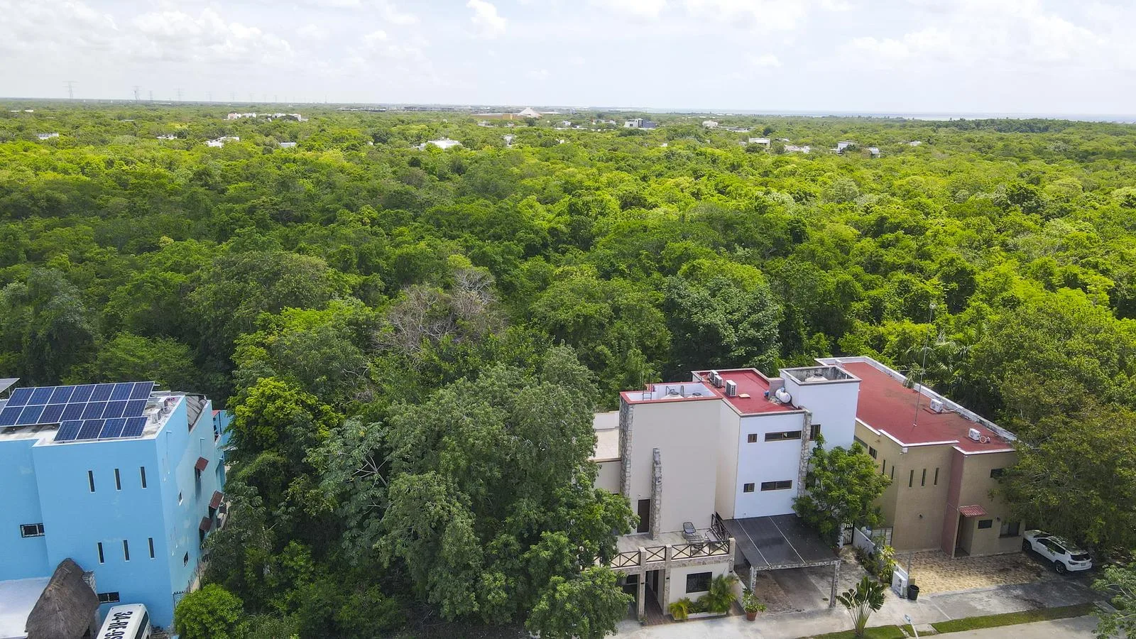 The home is within the El Cielo community, a gated residential area located on the seaside. The neighborhood offers quiet streets, walking paths, and abundant greenery. It is situated approximately 12 minutes from downtown Playa del Carmen and 45 minutes from Cancun International Airport. The certified Blue Flag beach of Xcalacoco is approximately 2 kilometers (1. 3 miles) away.
