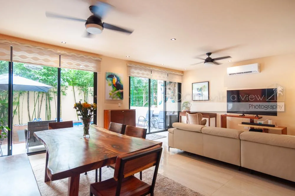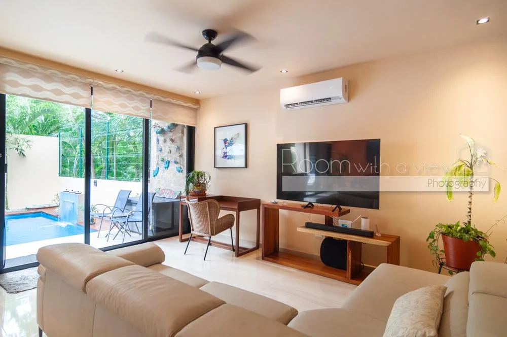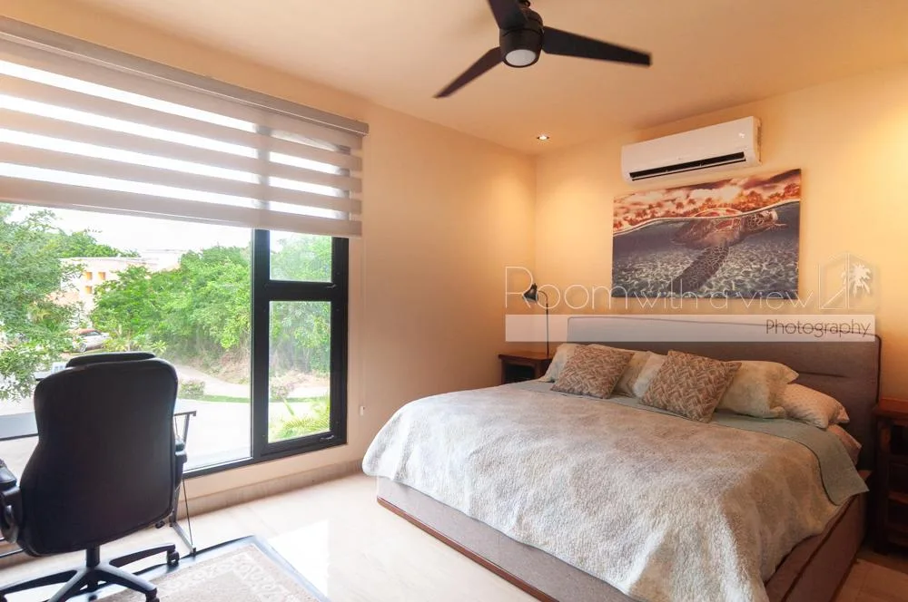 This villa is situated in El Cielo, a secure gated community near Playa del Carmen. The location offers proximity to beaches, beach clubs, and golf courses, and is approximately 30 minutes from the airport. The property provides privacy while being close to town services.