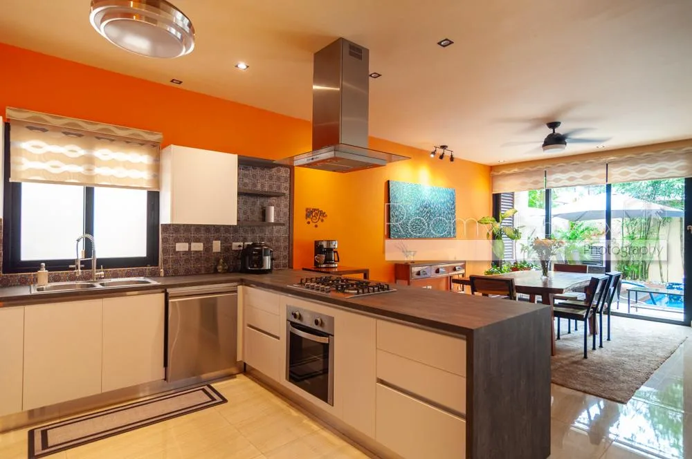 The villa features a spacious open layout filled with natural light. It includes three bedrooms and two and a half bathrooms. The home has a fully equipped kitchen with premium appliances and high-quality finishes throughout and is furnished.