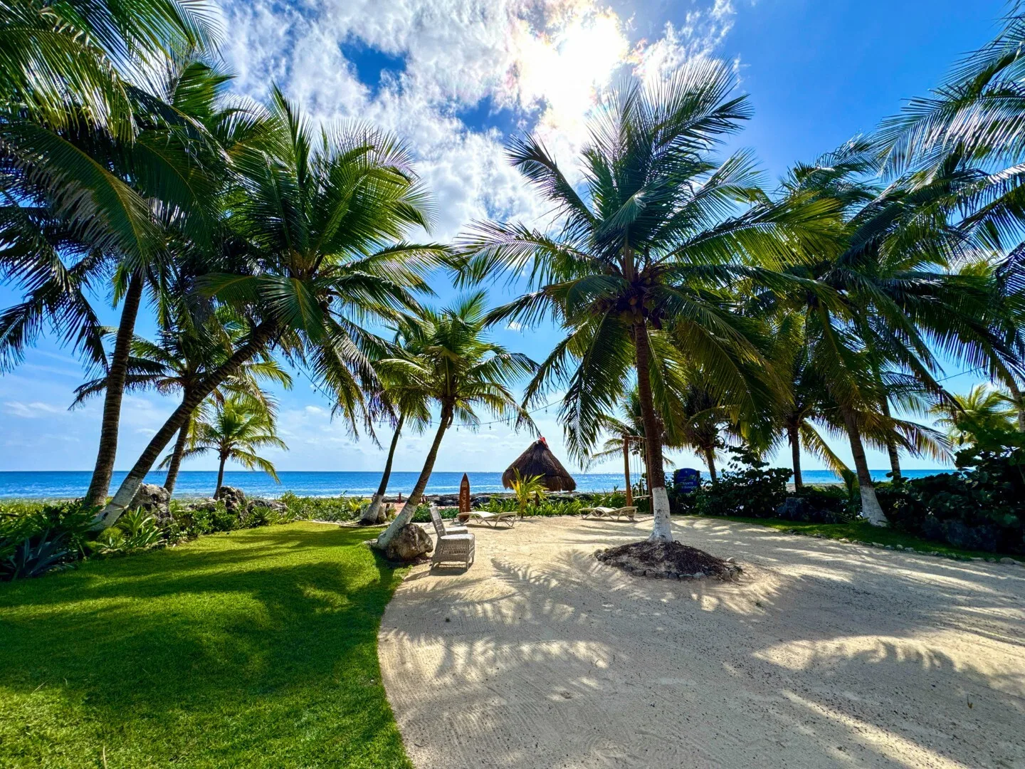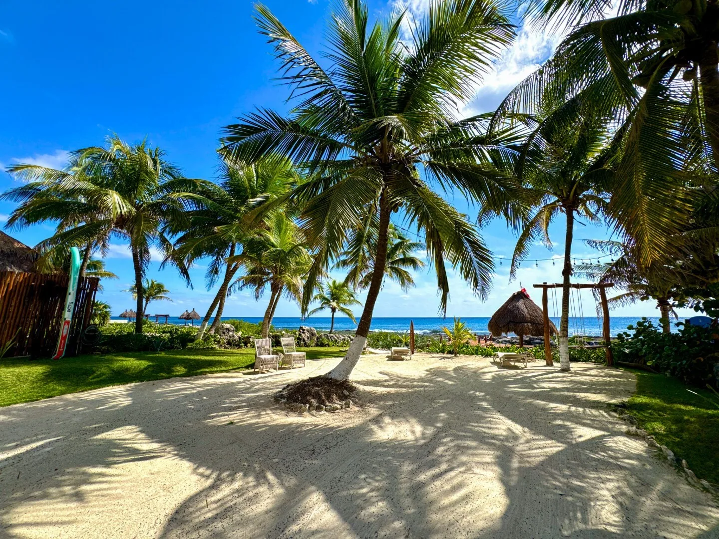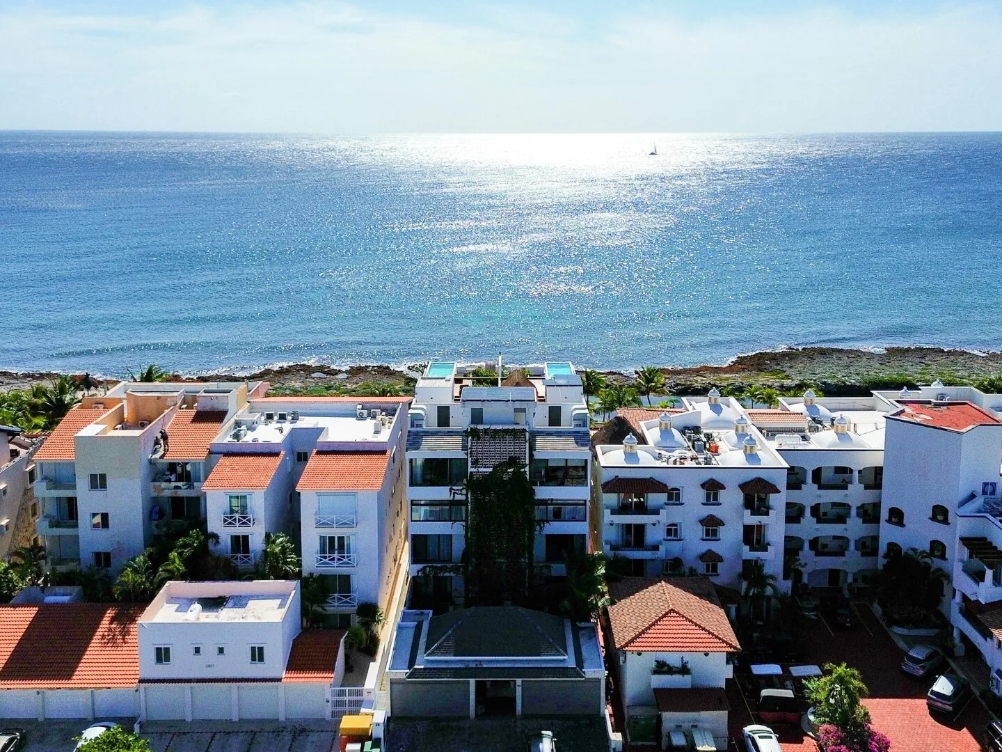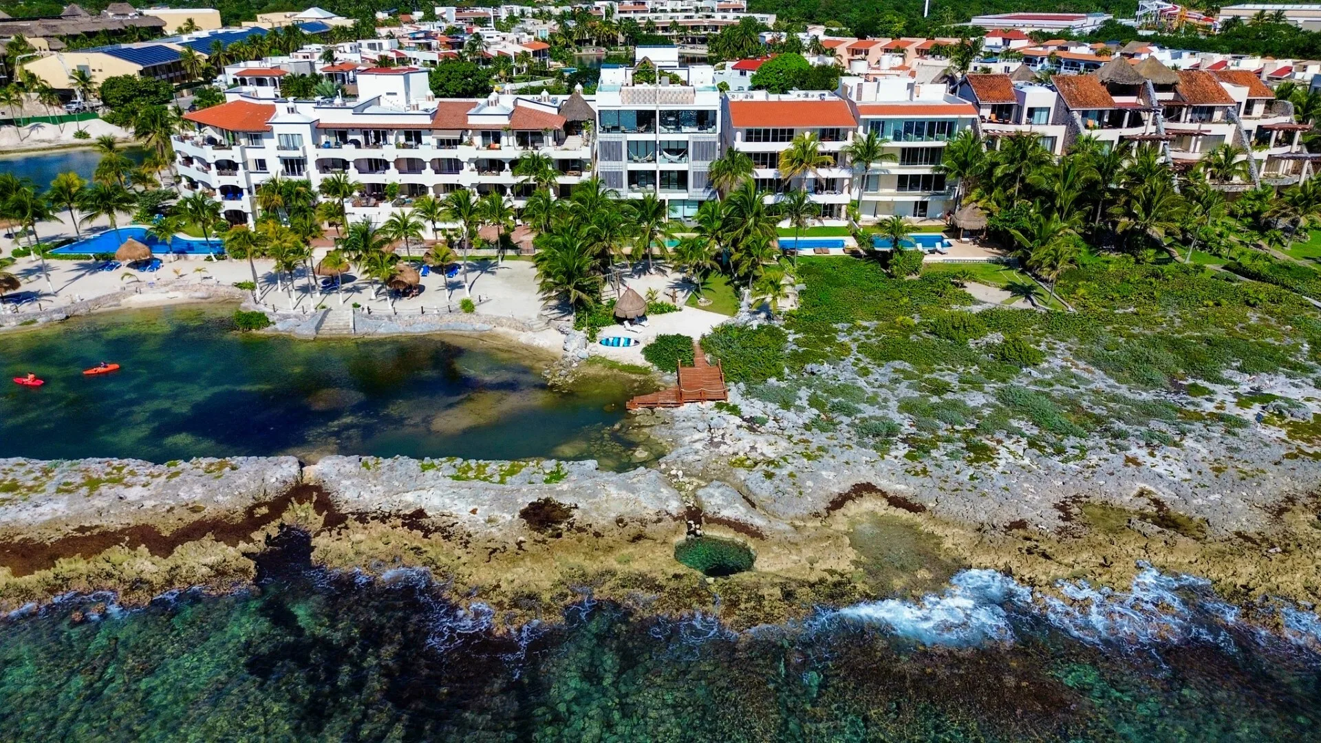 This beachfront residence is set in Puerto Aventuras, positioned between the Caribbean Sea and a calm lagoon. It offers uninterrupted water views and direct access to both the open sea and a protected, swimmable shoreline.