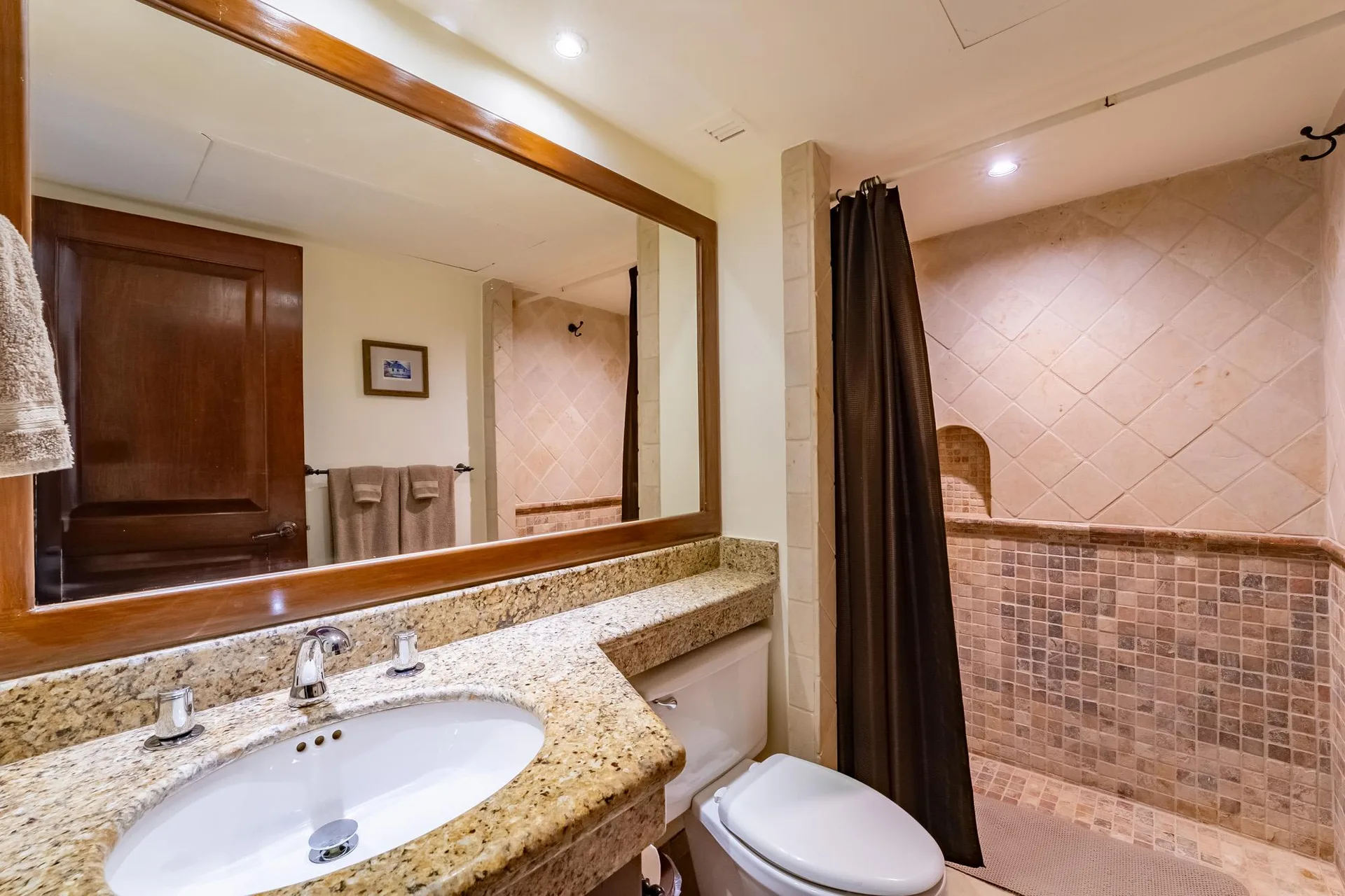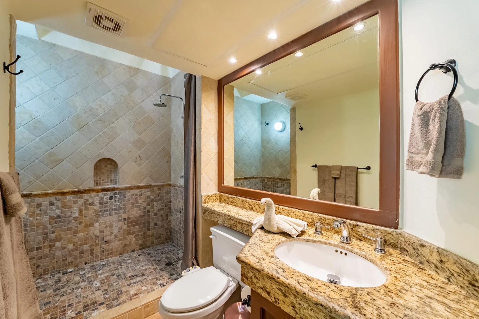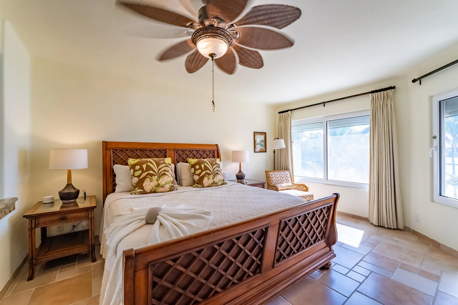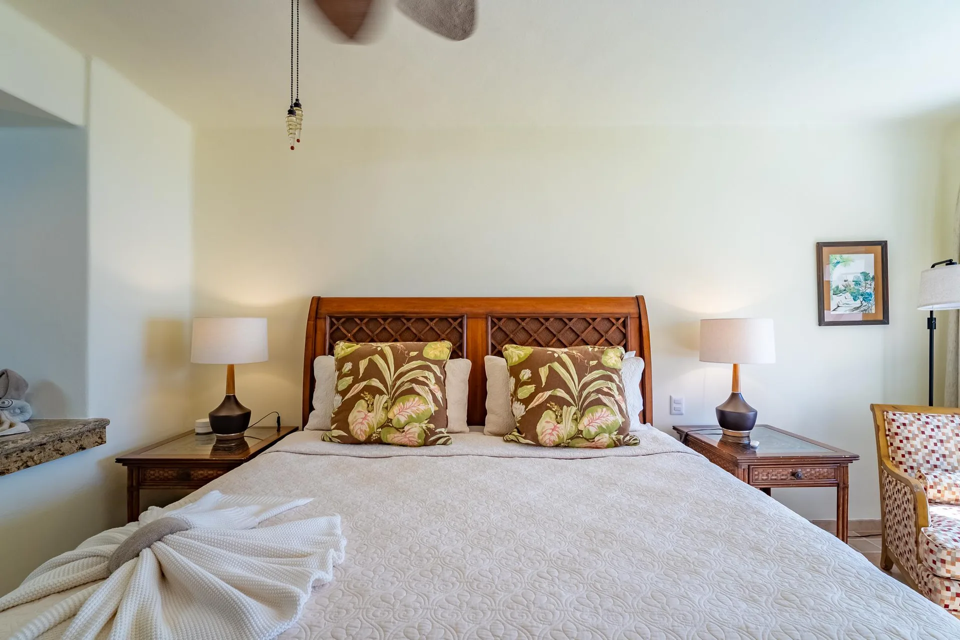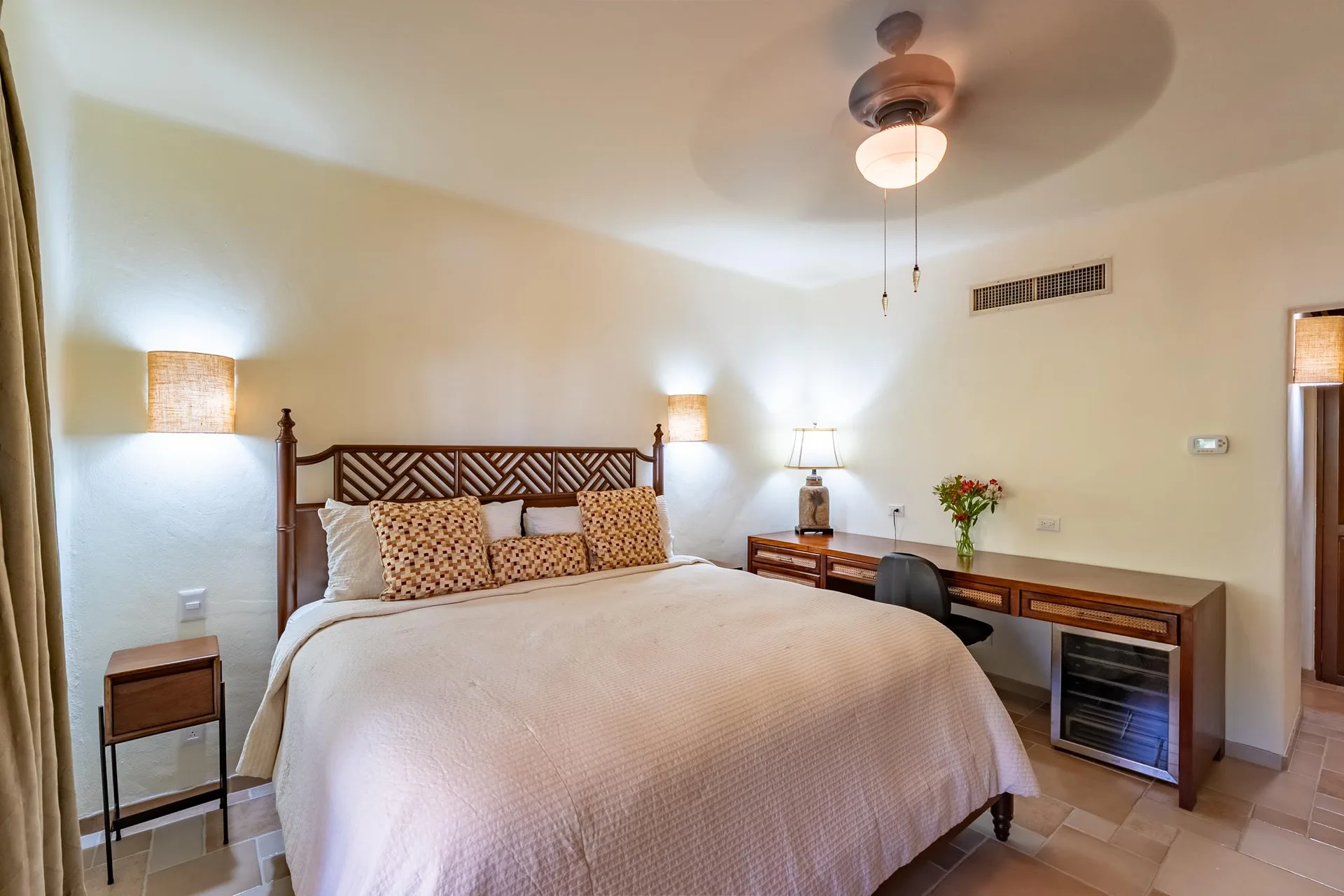 The unit features a private terrace overlooking the brilliant Caribbean Sea. Inside, you will find two spacious primary bedrooms, each with a king-size bed. The modern open floor plan includes a fully equipped kitchen, dining area, and comfortable living room, all designed to capture the sea breeze and ocean views.