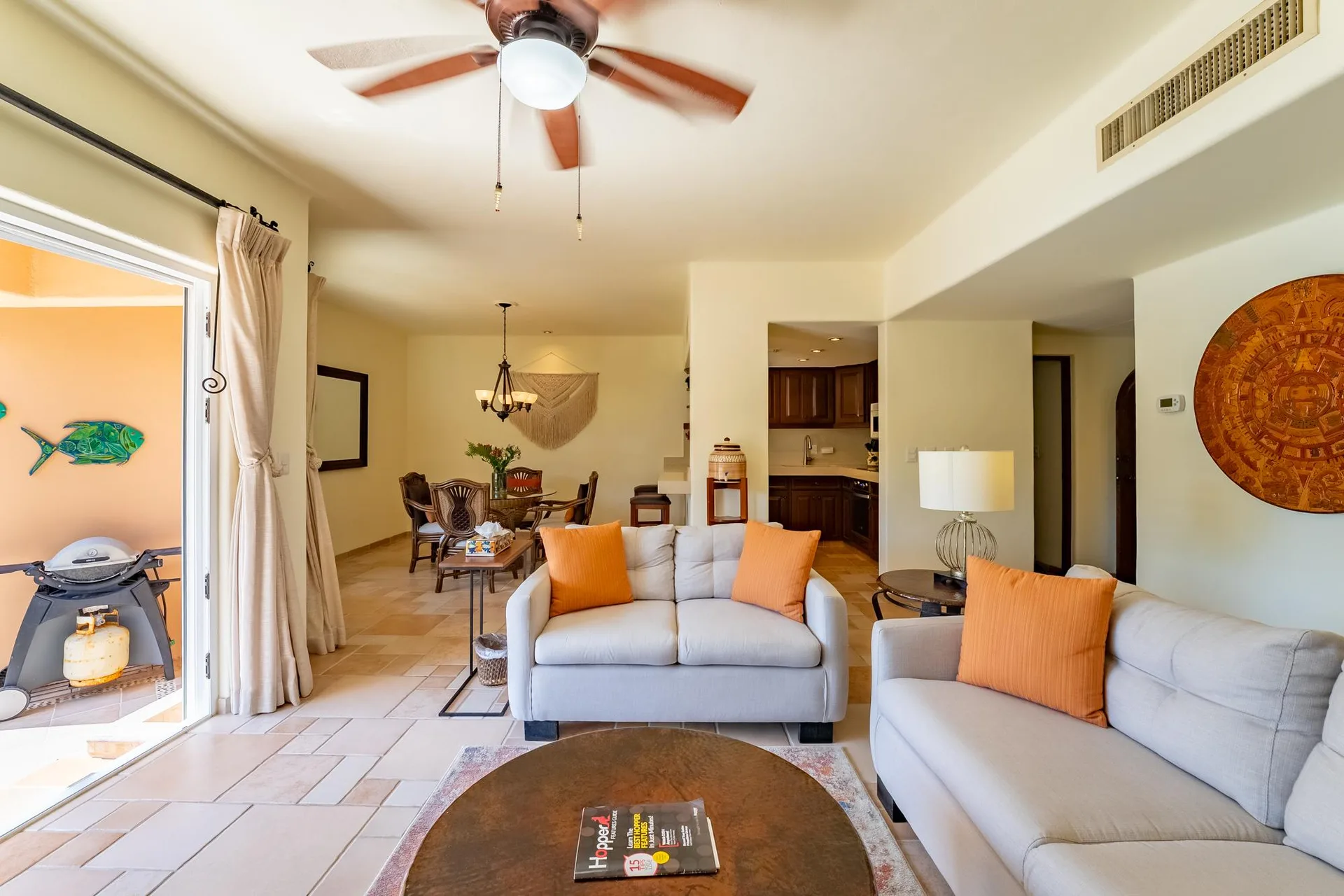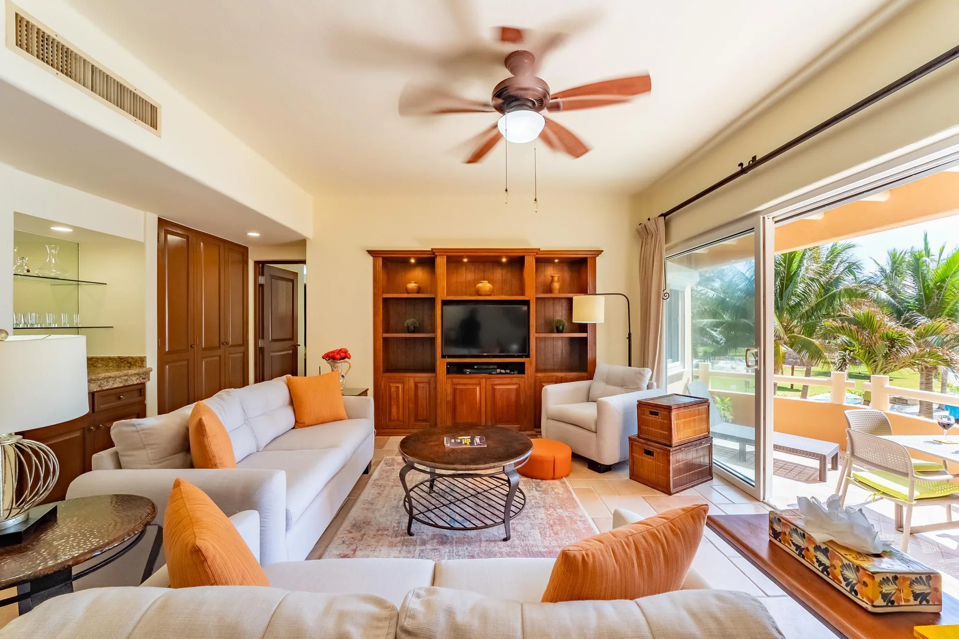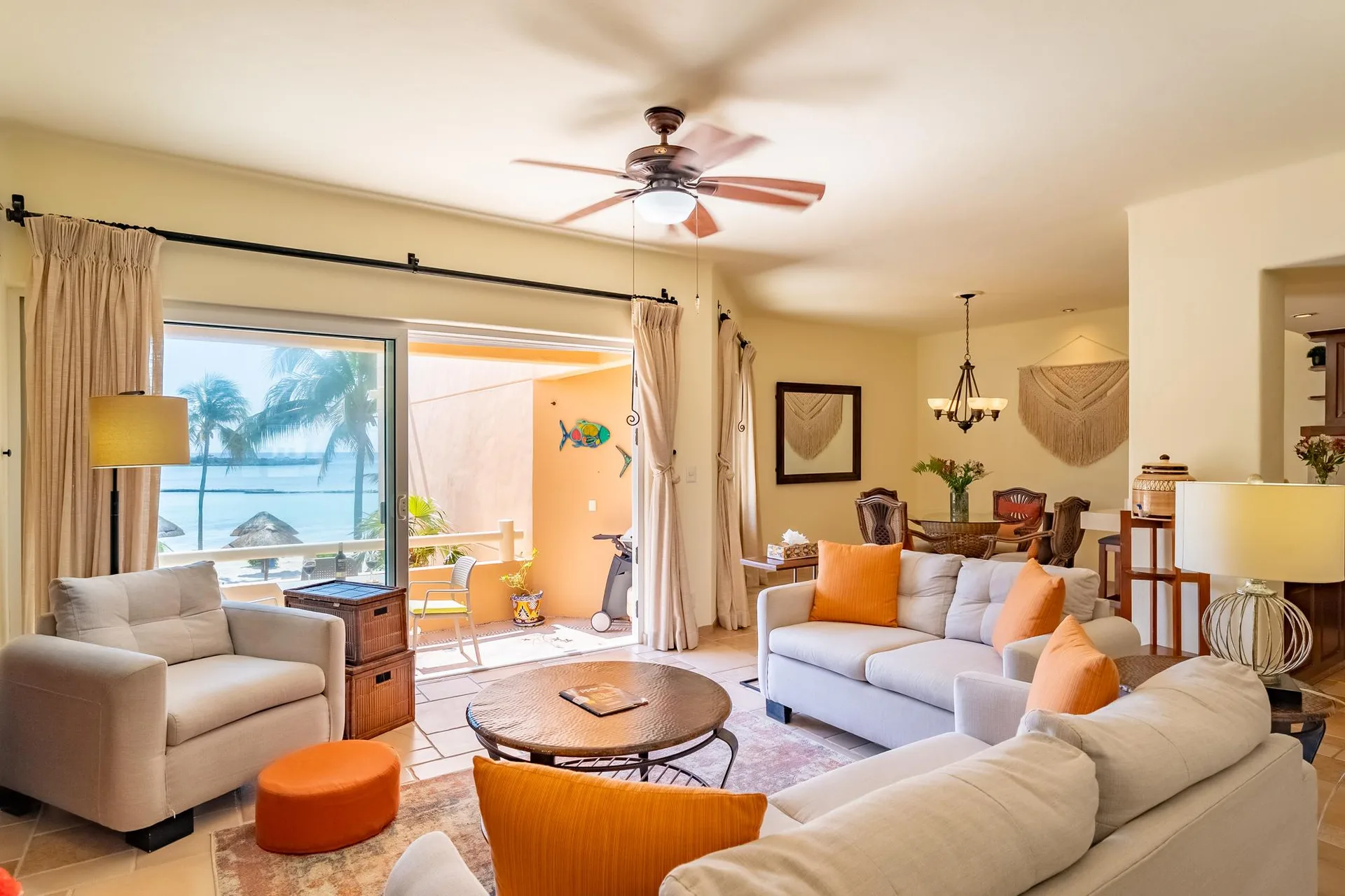 This beachfront condominium offers luxurious coastal living within the exclusive Villas del Mar community in Puerto Aventuras. The beautifully appointed two-bedroom, two-bathroom residence is located on the second floor and provides direct beach access.