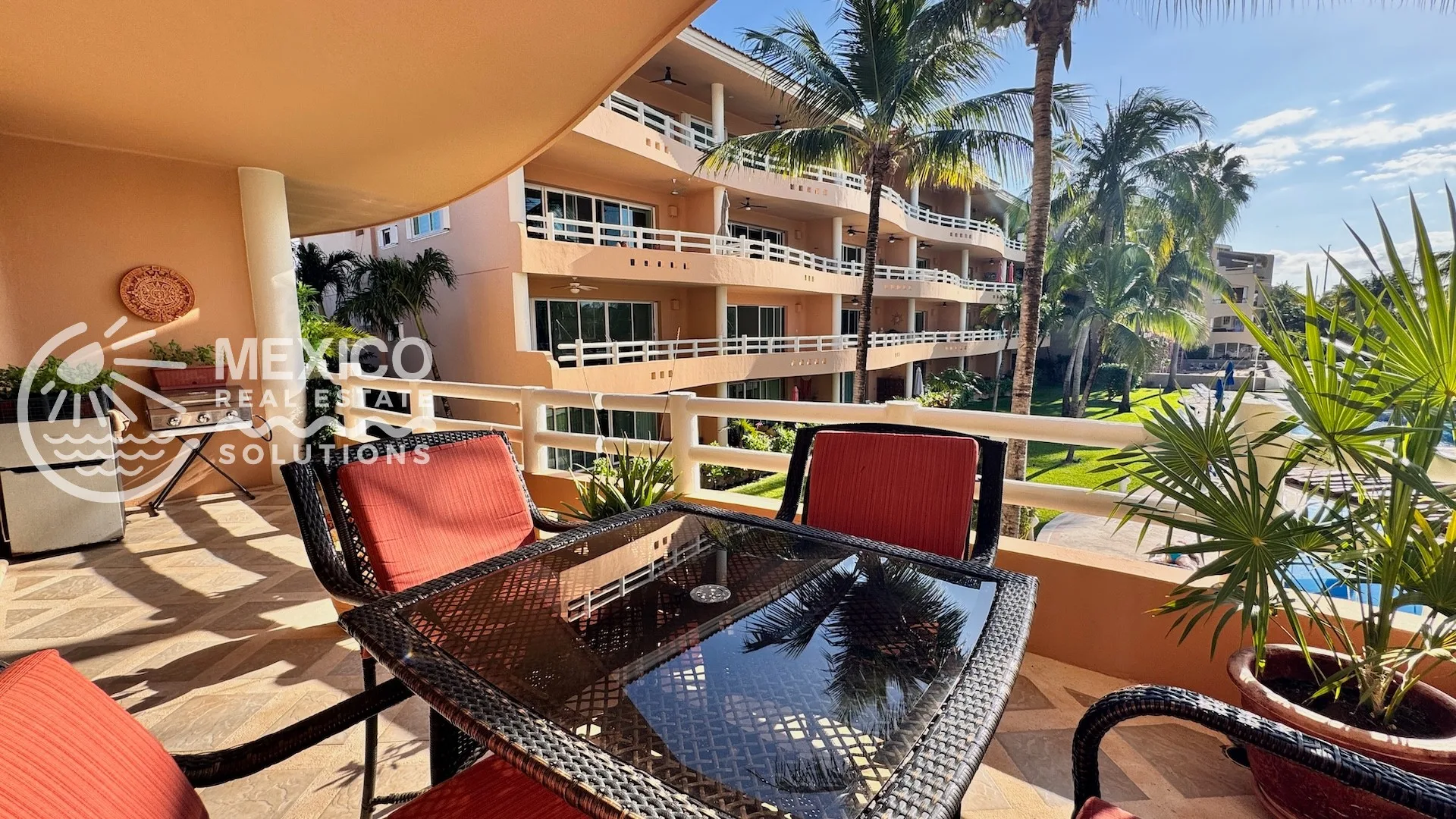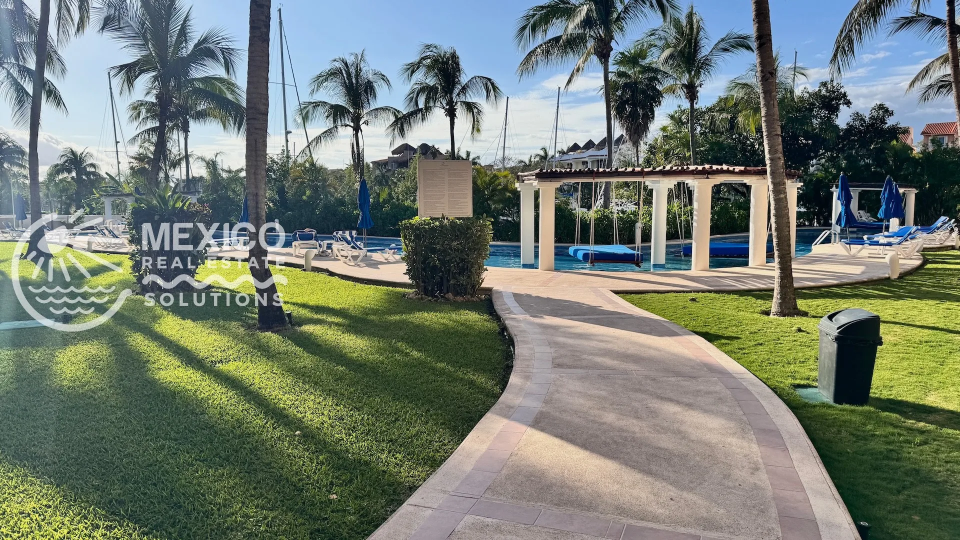 The condominium is located in Puerto Aventuras, a planned community built around a full-service marina with private beaches and a 9-hole golf course. The community offers walkability, 24/7 security, tennis courts, bilingual schools, cafes, and restaurants. It is conveniently situated between Playa del Carmen and Tulum.