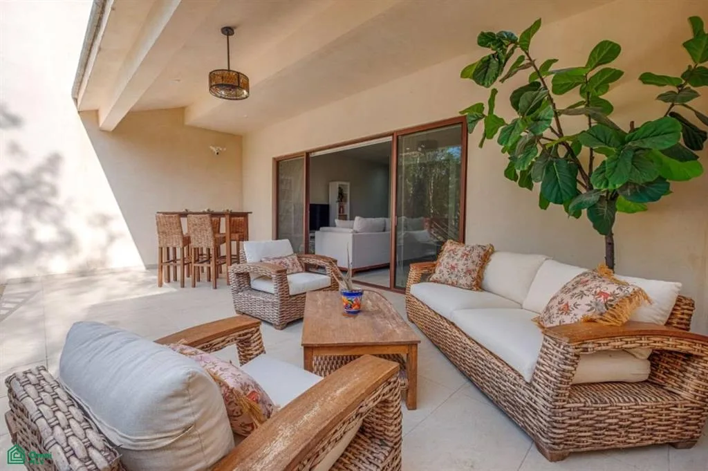 Located amidst lush green vegetation, this two-bedroom, two-bathroom condo offers a comfortable retreat with sunny interiors and appealing indoor and outdoor spaces. It is situated within a secure, gated community known for its early-closing restaurants and strict noise rules, ensuring peaceful evenings. The ground-floor unit features a thoughtfully designed layout with no stairs and provides direct access to the pool, simplifying daily living and guest stays.