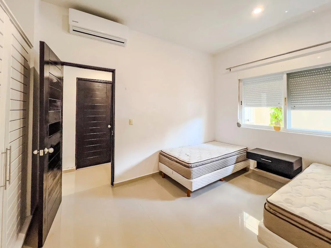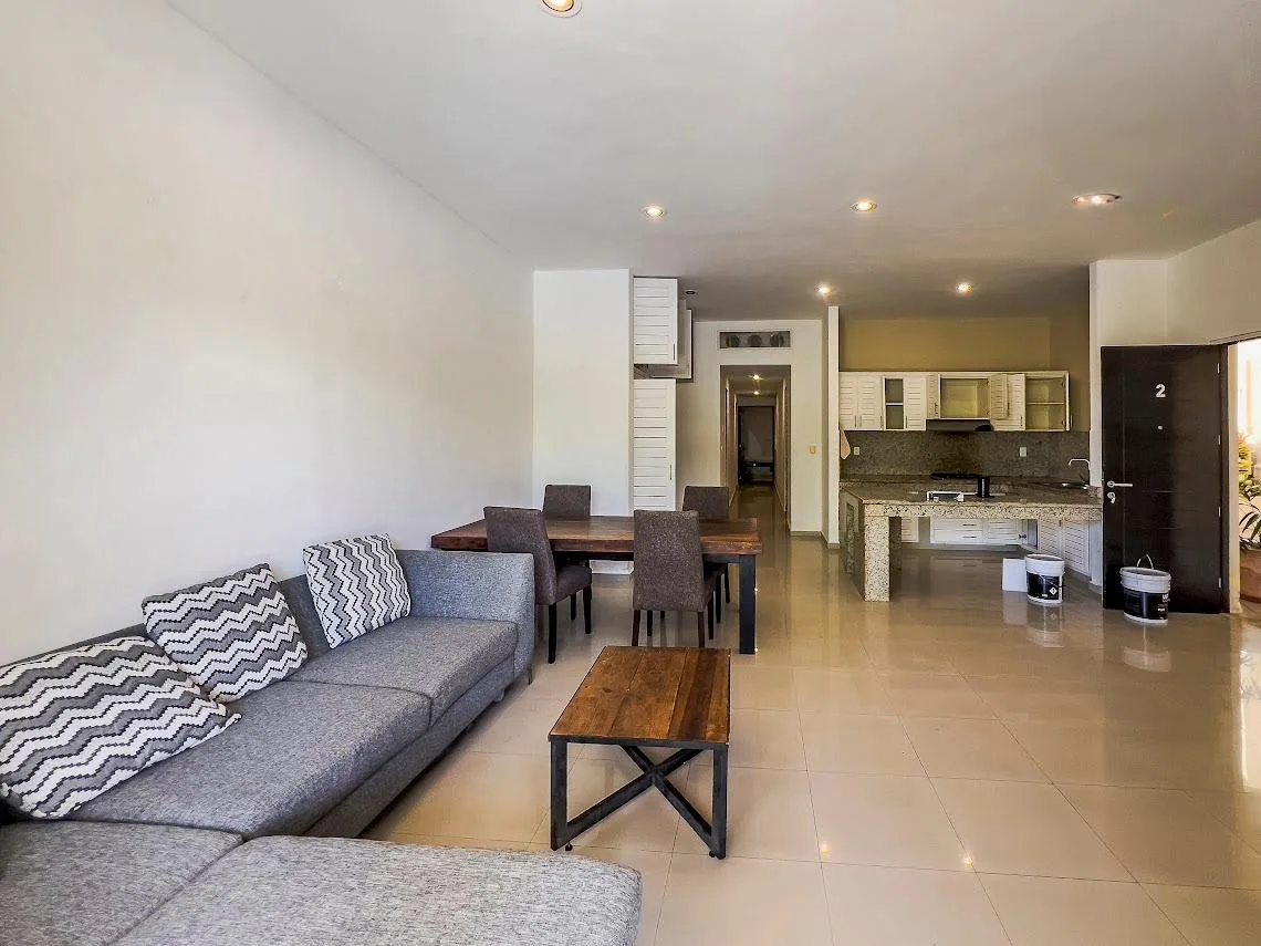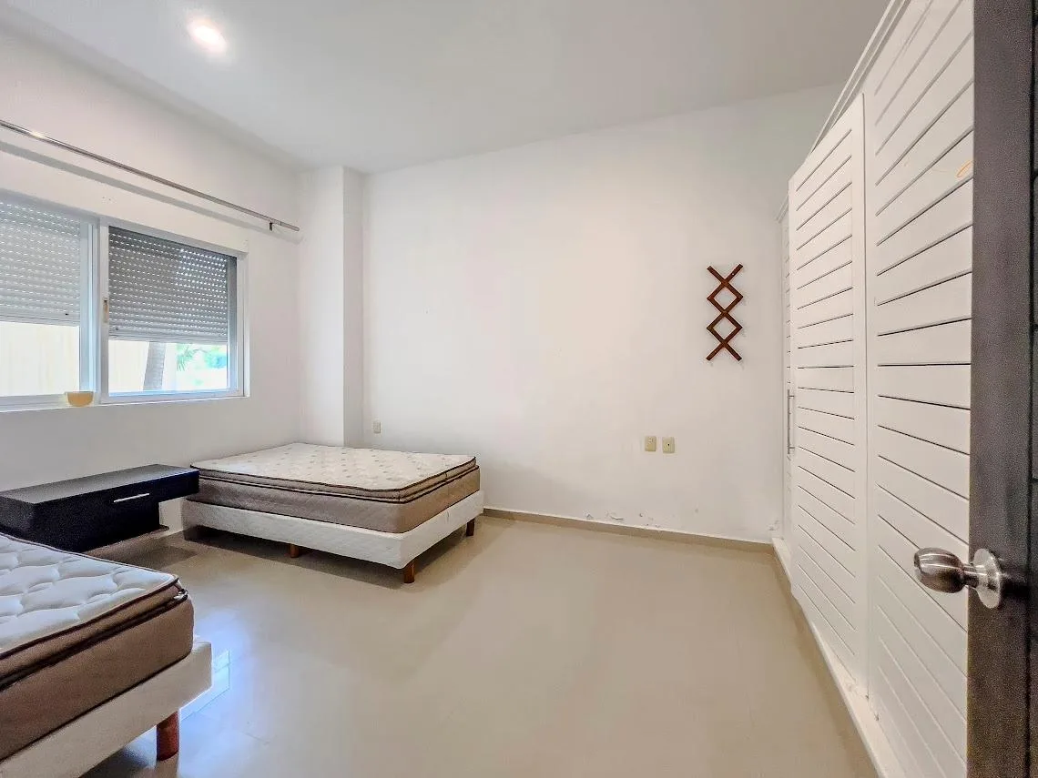 This ground floor apartment is located in Puerto Aventuras, approximately 15 minutes from Playa del Carmen. It offers two bedrooms and direct access to a swimming pool, with a spacious private terrace that provides views of the lagoon.