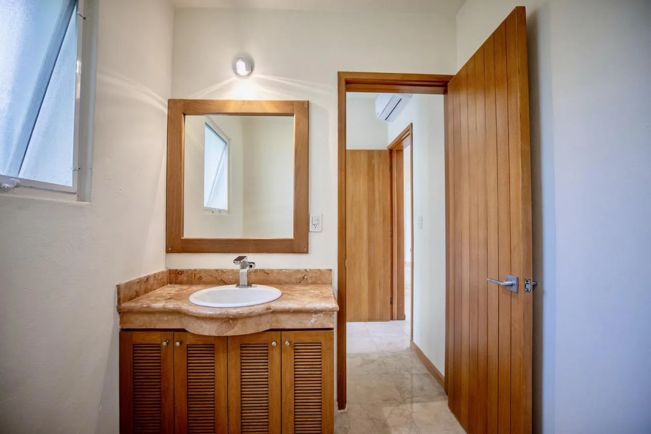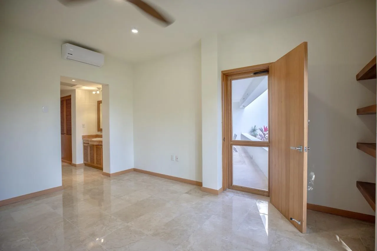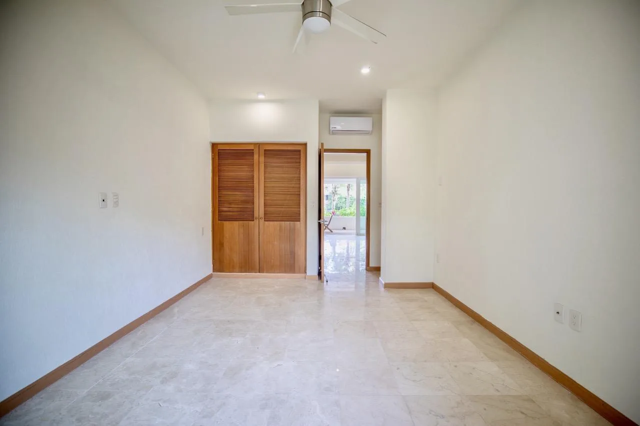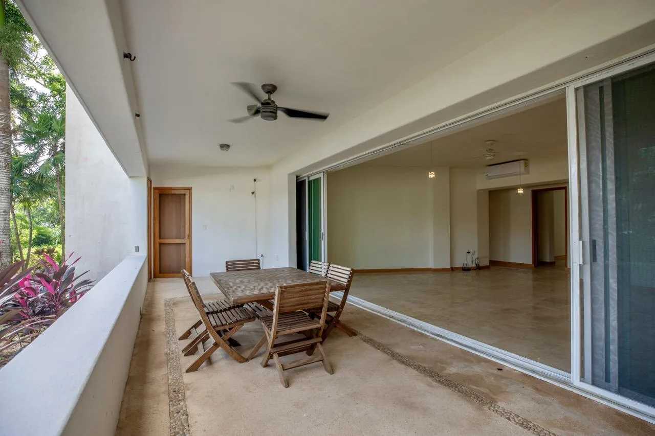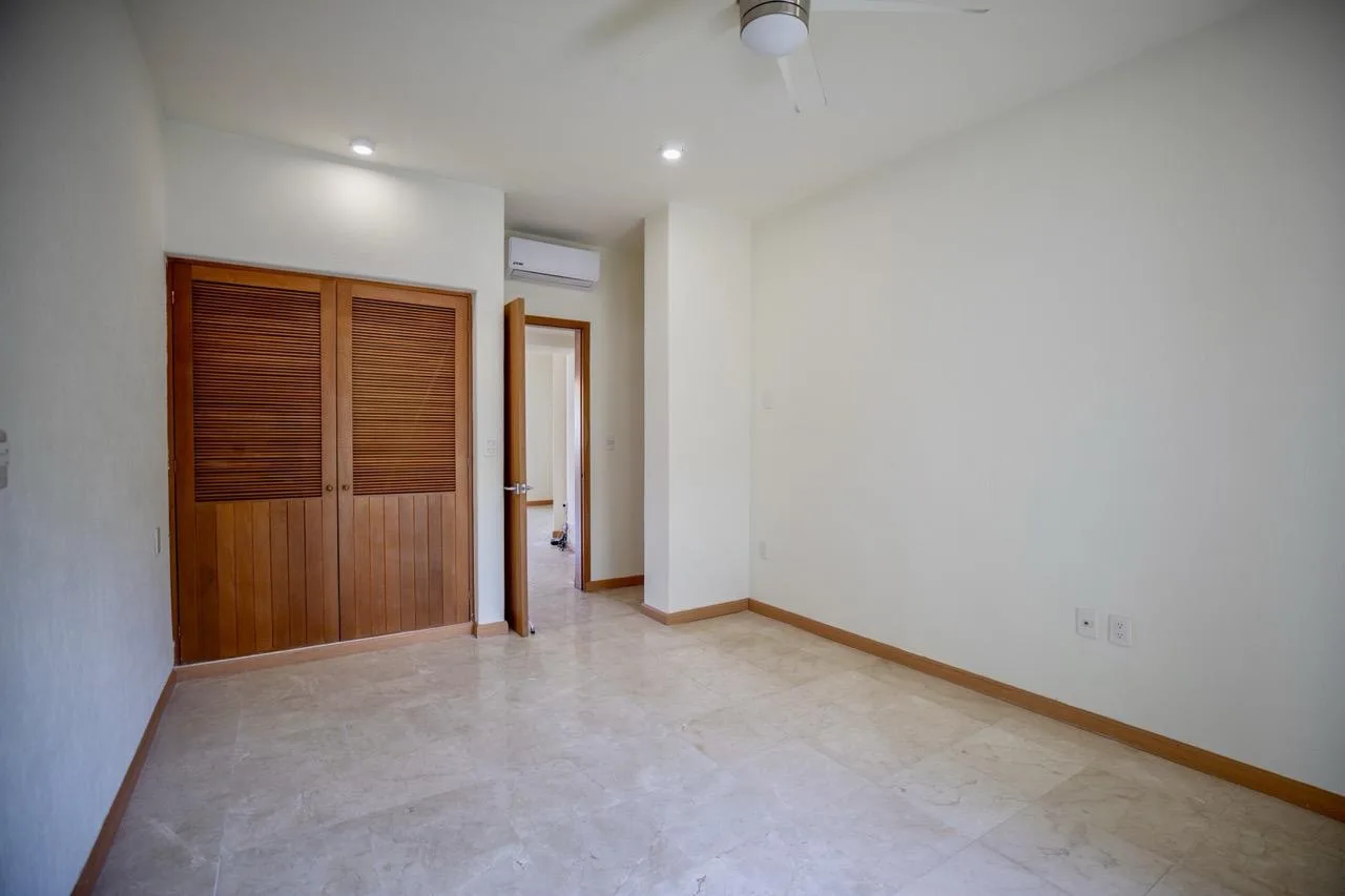Residents have access to shared amenities including a swimming pool, tropical gardens, and private beach access. The community features 24-hour security. It is a tranquil and secure area with convenient access to the Puerto Aventuras golf course, tennis courts, restaurants, shops, and the main beach.