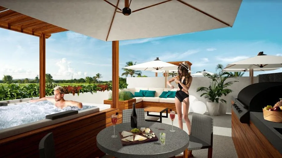 Barú Puerto Aventuras is a modern and exclusive complex comprising 12 apartments and 5 townhouses with hotel services, divided into two two-story buildings. All units are designed with meticulous attention to detail, blending luxury and functionality for optimal comfort.