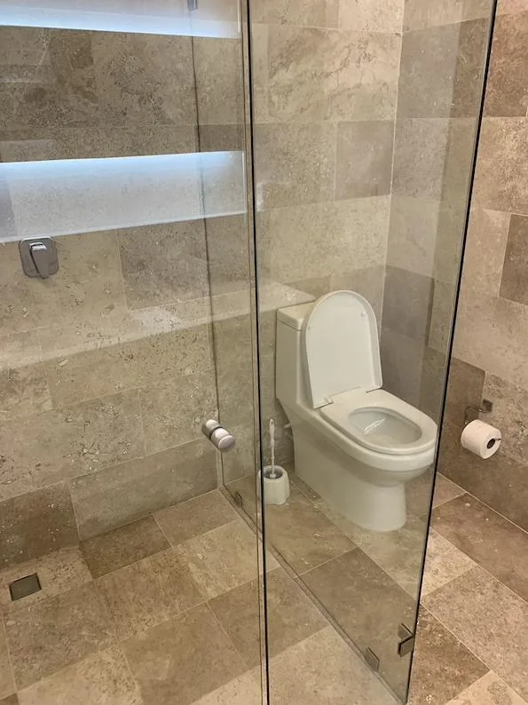 The building features a large swimming pool for leisure, a barbecue area for gatherings, elevators, common area bathrooms, green spaces, security cameras, and private parking.