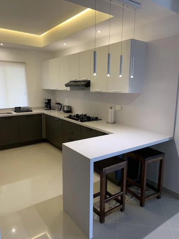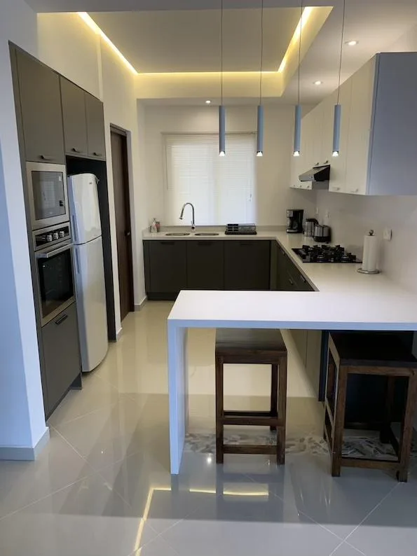This captivating condo is fully furnished and features 2 bedrooms and 2 full bathrooms. The layout includes an integral kitchen with a fully equipped breakfast bar, a living room, a dining area, a large terrace, and a laundry room with a washing station. The property is equipped with air conditioning units, ceiling fans, a television, and a private parking space.