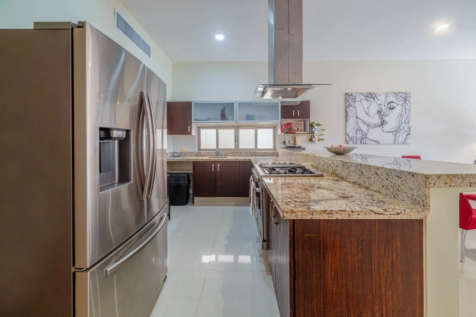 This spacious and immaculate end-unit condo offers 140 m² of living space, perfectly situated on the golf course within the gated marina community of Puerto Aventuras.