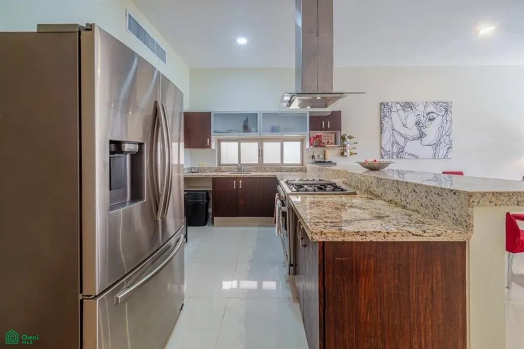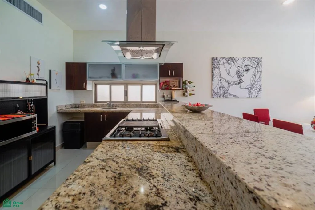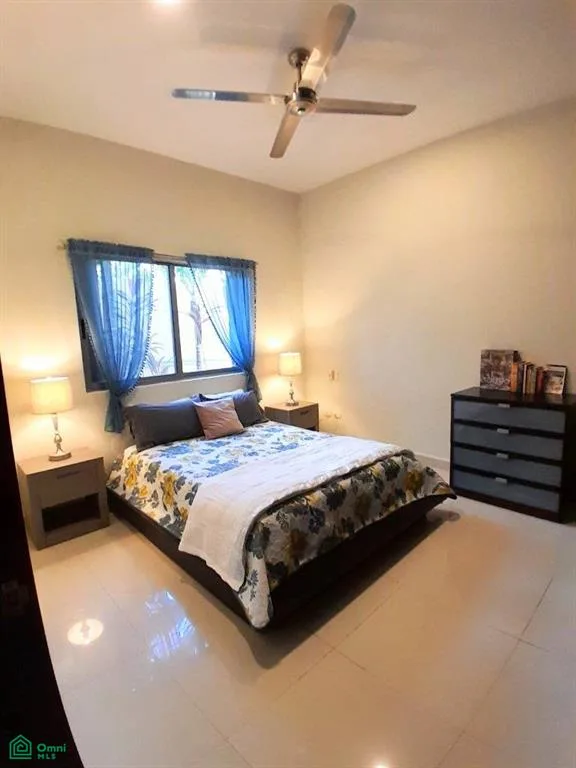 This spacious and immaculate end-unit condo is situated on the golf course within the gated marina town of Puerto Aventuras. It offers 140 square meters of living space.