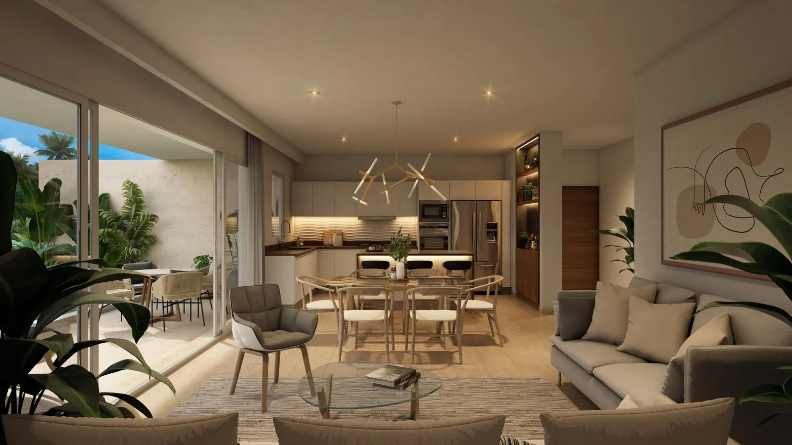 Each apartment incorporates high-quality materials and contemporary design. Features include an integrated high-gloss MDF kitchen with a quartz countertop and Helvex or similar faucetry. Appliances are from TEKA or equivalent brands. Closets and doors are crafted from Tzalam wood or similar materials. The units are equipped with white PVC window frames and high-efficiency inverter mini-split air conditioners.