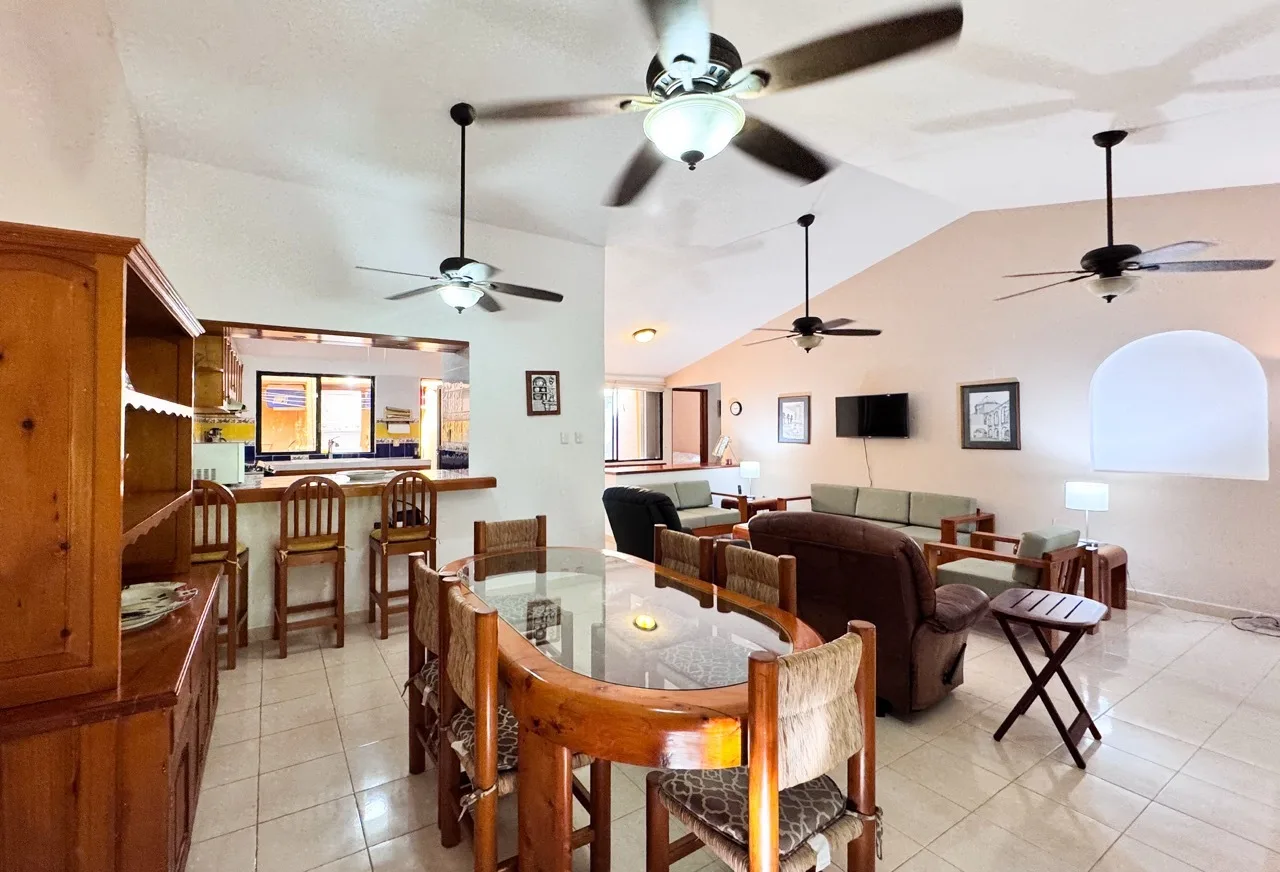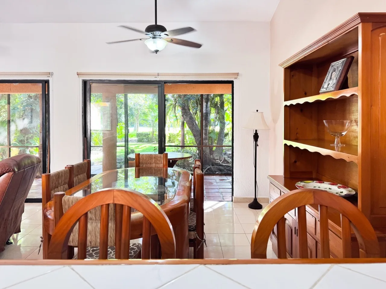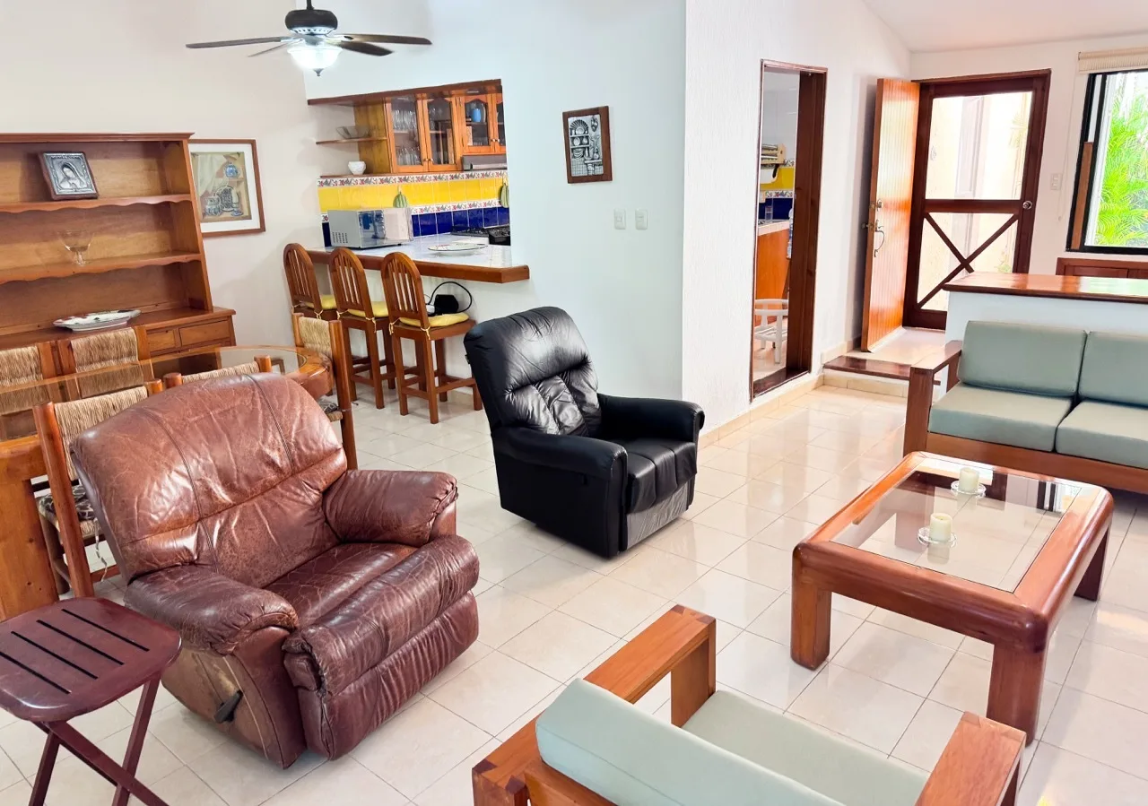 This fully furnished 3-bedroom home is located within the secure, gated community of Puerto Aventuras in the Riviera Maya. The property offers direct views of the golf course from its backyard and features a highly functional layout.