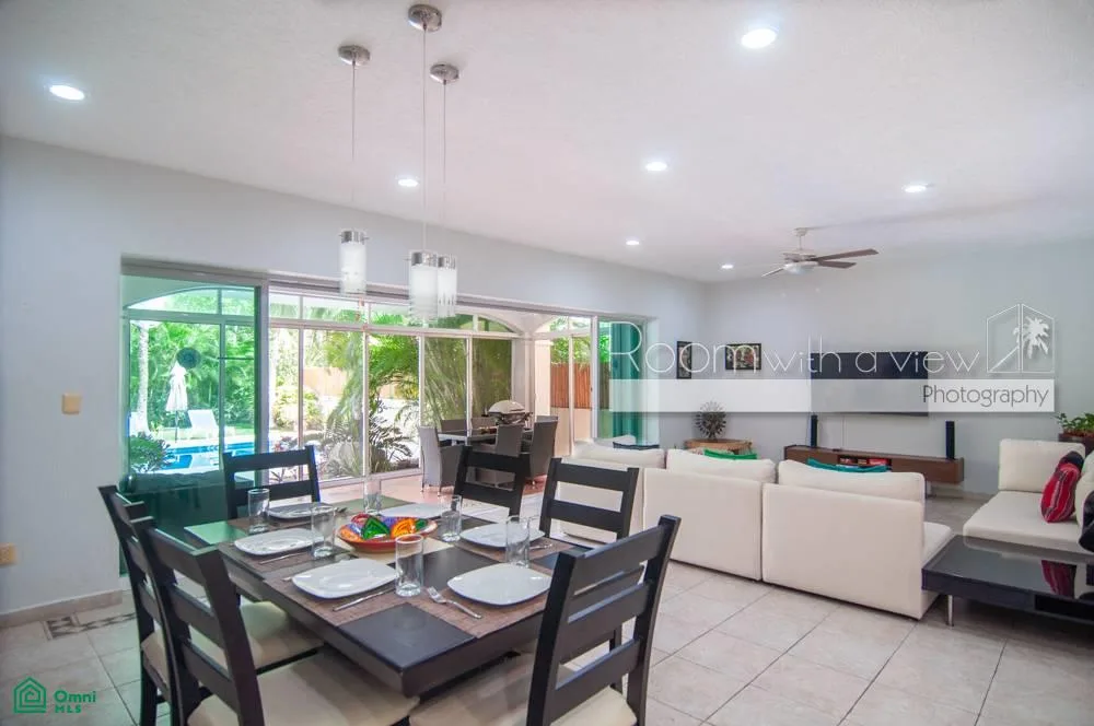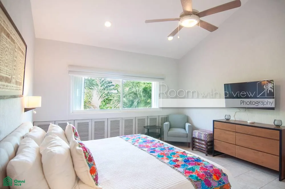 The home is set within the secure, gated community of Puerto Aventuras, which offers a peaceful atmosphere and access to a wide range of amenities. These include golf, tennis, yoga, sailing, snorkeling, and deep-sea fishing. A walkable selection of shops and restaurants adds convenience, and noise regulations ensure a tranquil environment.