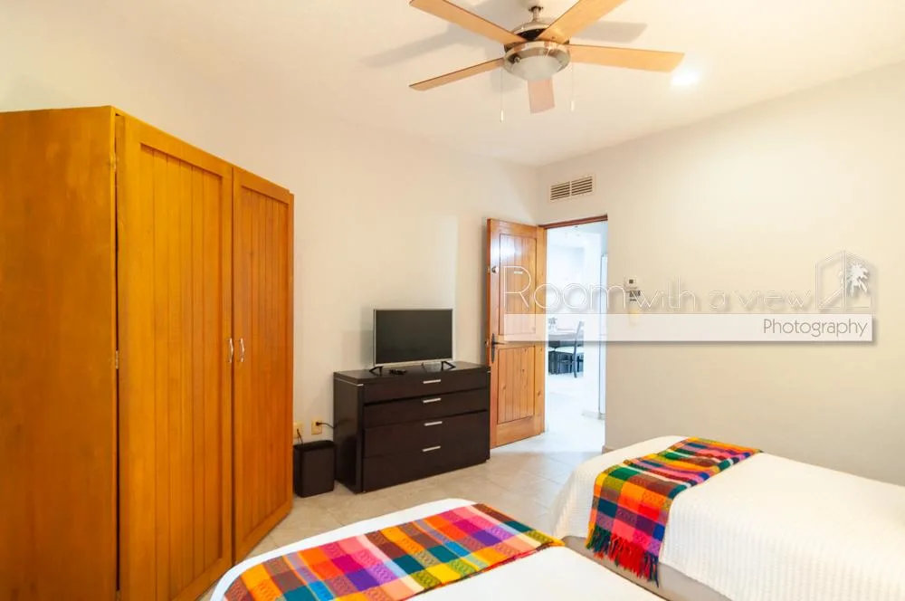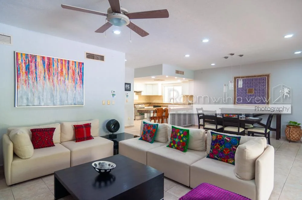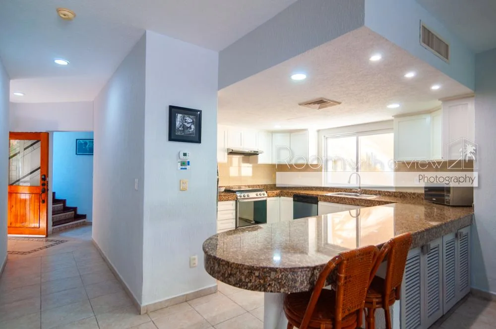 The property is located within a secure, gated community in Puerto Aventuras, offering a peaceful atmosphere and access to resort-style amenities including golf, tennis, yoga, sailing, snorkeling, and deep-sea fishing. A walkable selection of shops and restaurants adds convenience, while strict noise regulations ensure quiet days and serene evenings. The beach is just minutes away.