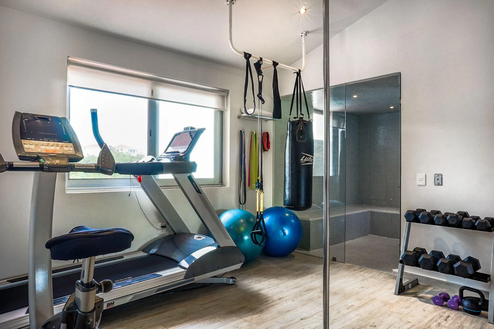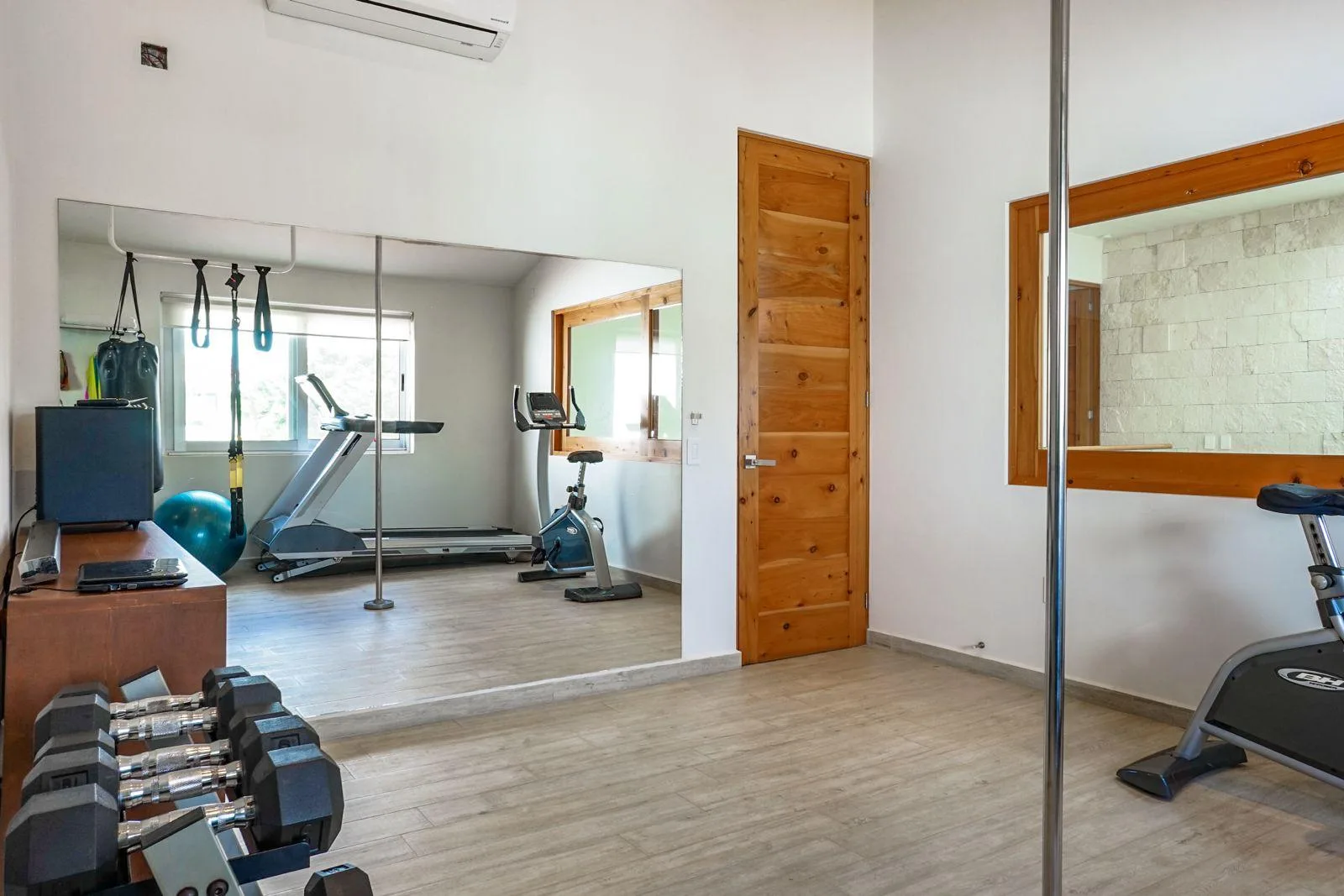 The property features a flexible layout with 4 bedrooms, currently arranged as 3 bedrooms and a gym that easily converts into a fourth bedroom. There are 4. 5 bathrooms with elegant appointments.