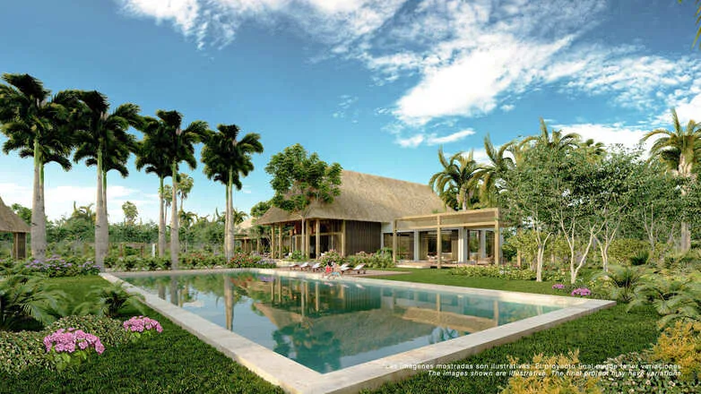 This development is situated near Puerto Aventuras and Xpu Ha and features large lots exceeding 600 square meters. The property offers resort-style amenities and views of the surrounding jungle.