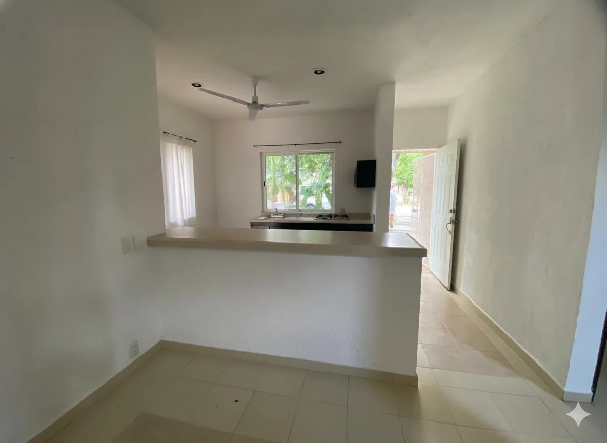 This property is located within the private community of Puerto Aventuras. It offers a tranquil environment surrounded by nature and borders directly with the 6th green of the golf course, ensuring privacy and a setting lush with vegetation.
