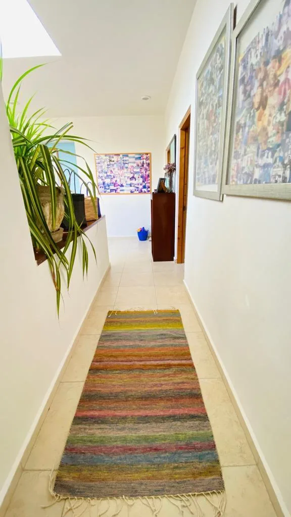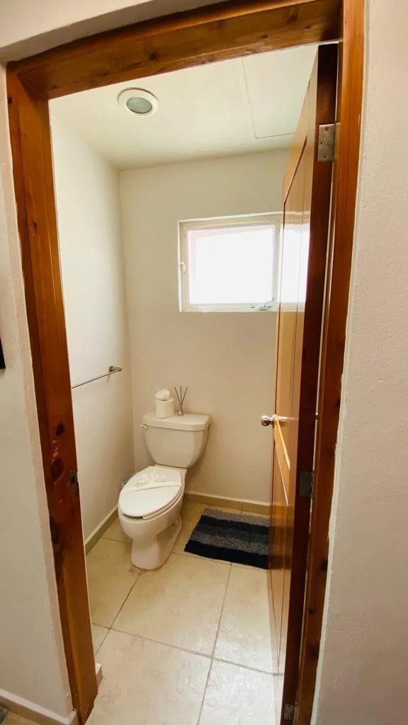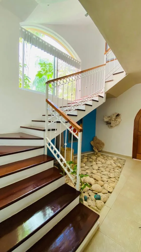 An internal staircase connects the ground floor, upper floor, and the rooftop solarium, which is integrated with the first-level lobby. An independent office or guest house is located above the garage, with private access from the main home, containing three living spaces and a full bathroom. A service room with its own bathroom is integrated with the service patio.