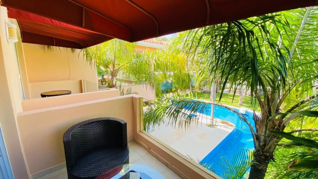 The kitchen is fully equipped with an independent pantry. A separate family television room is also provided. The primary bedroom includes a private terrace with marina views, walk-in closets, and a full bathroom with a Jacuzzi and steam bath. A second bedroom faces the marina with its own balcony, a walk-in closet, and a full bathroom. The third bedroom also faces the marina with a private balcony, a walk-in closet, and a full bathroom. A fourth bedroom faces the avenue and includes a walk-in closet and a full bathroom.
