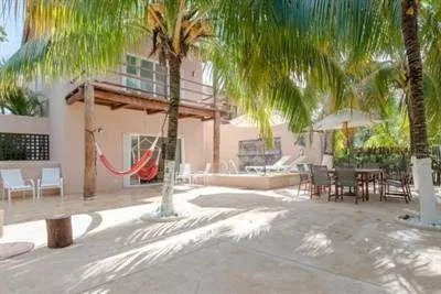 This fabulous remodeled house for sale is located in Puerto Aventuras on Calle 8 of the golf course. The property sits on a 6, 456 square foot lot, with the two-story home offering 2, 690 square feet of living space. It provides a comfortable and tranquil setting within walking distance of the beach.