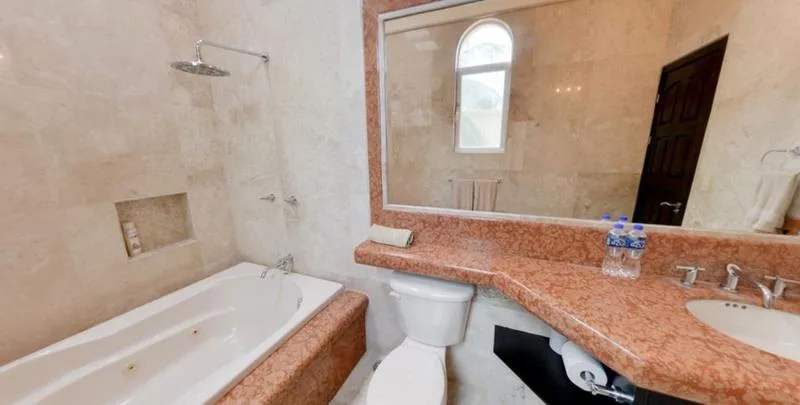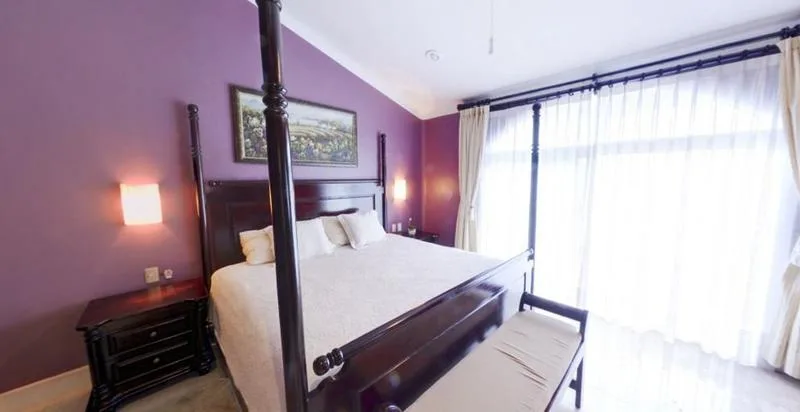 This house features direct access to a golf course and benefits from 24-hour, year-round security. The property includes a service quarters with a small kitchenette and a full bathroom.
