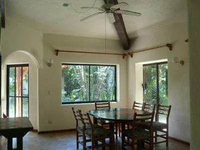 This house is constructed on a 1, 200 square meter plot with 435 square meters of built area across three levels. It is located opposite Fairway #8 at the Puerto Aventuras Golf Club.