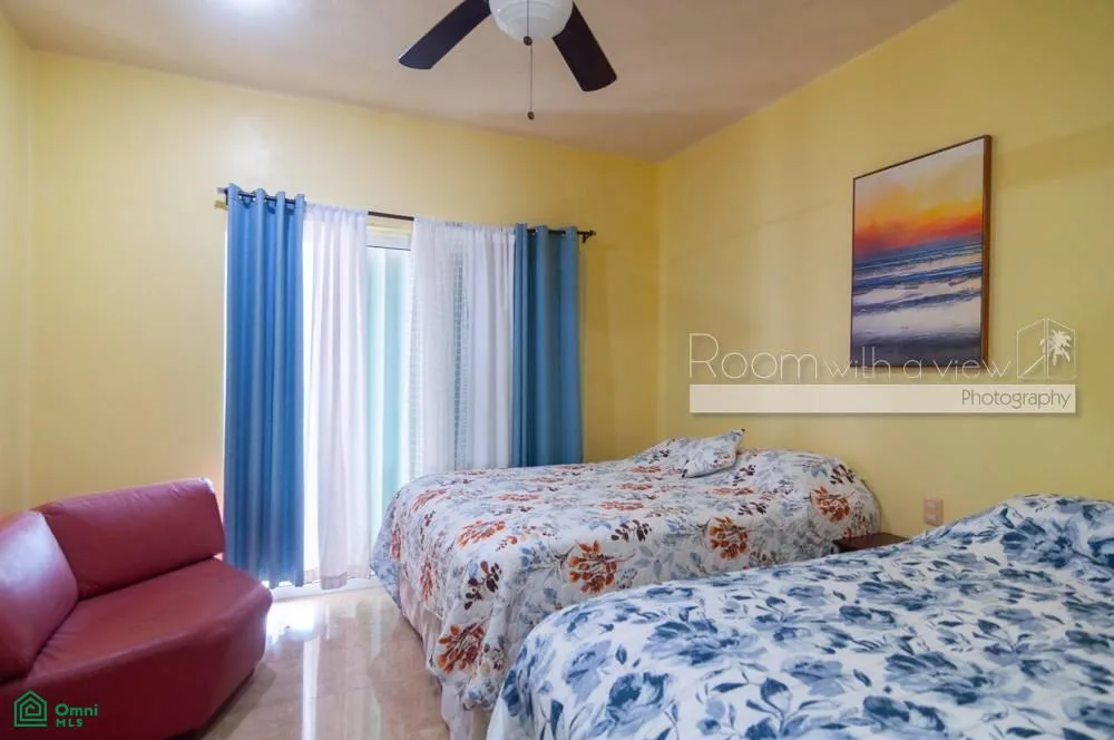 This Portofino penthouse offers ocean and marina views from its spacious balcony and private rooftop terrace, which includes a jacuzzi. The property is situated in Marina Puerto Aventuras, a gated seaside community.