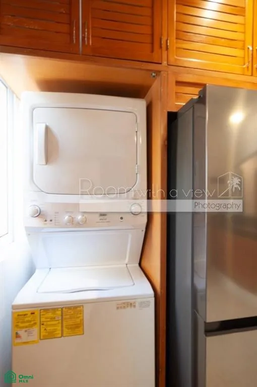 The property offers a golf course view and a street view from its covered patio and balcony. It is furnished and equipped with solar panels for energy efficiency and storm shutters. Practical features include two dedicated parking spaces and a golf cart charger. The home is just steps from the community pool and within walking distance of the beach.