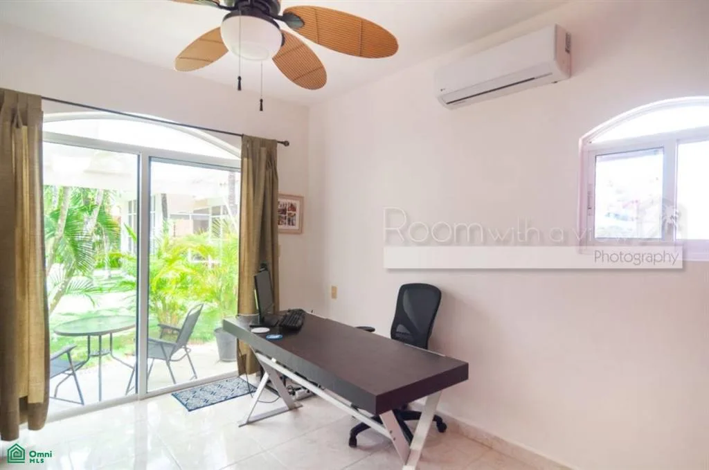 This updated stand-alone townhome is located next to the golf course in Puerto Aventuras. The gated complex features a community pool, tennis and pickleball courts, a restaurant, a mini market, and a beach club. Golf, sailing, snorkeling, and deep-sea fishing are accessible minutes away. The community maintains a peaceful environment with quiet evenings.