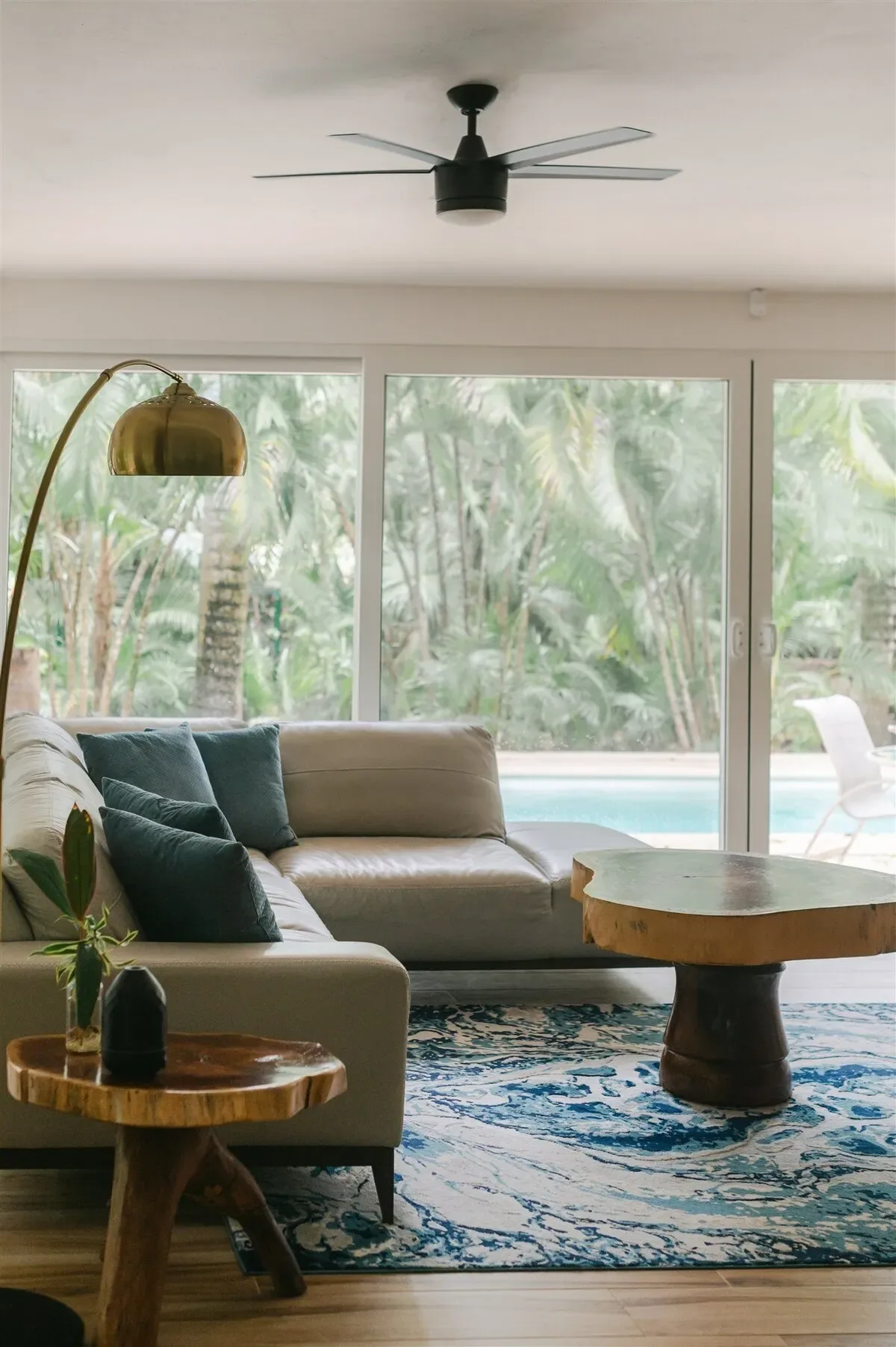 Outdoor amenities include a swimming pool and extensive gardens surrounded by lush greenery, providing complete privacy.