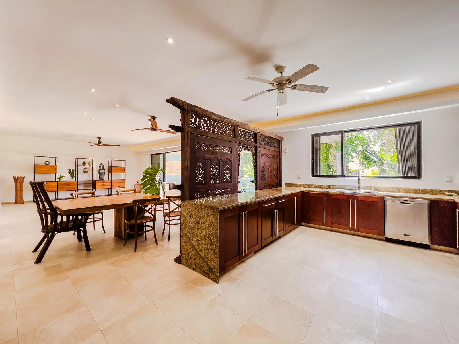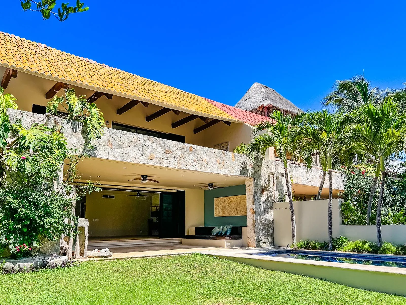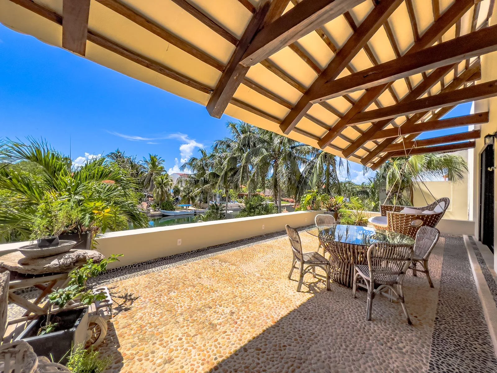 On one of the most exclusive streets in Puerto Aventuras, just three minutes from the school and commercial area, this elegant residence offers 610 square meters of construction on an 855 square meter plot. Its design combines spaciousness, functionality, and a direct connection with the nautical environment of the community.