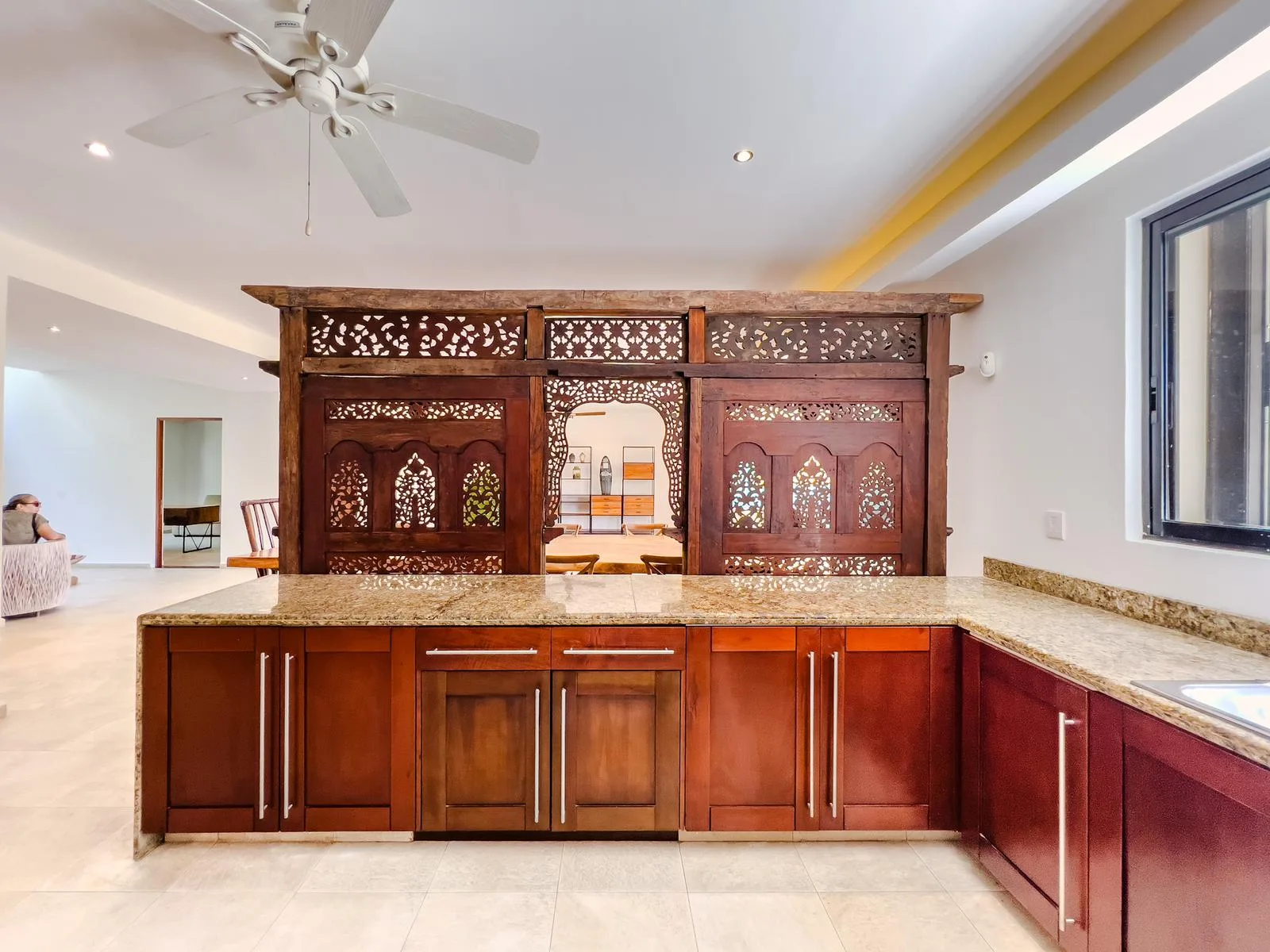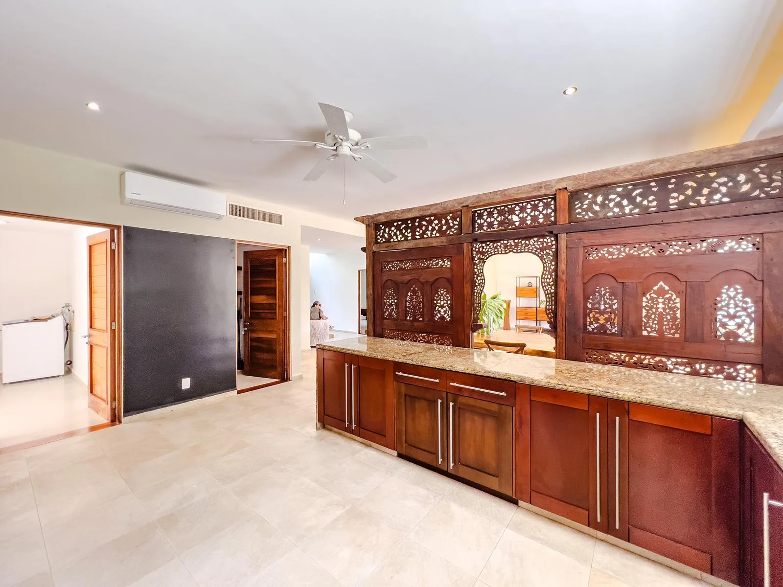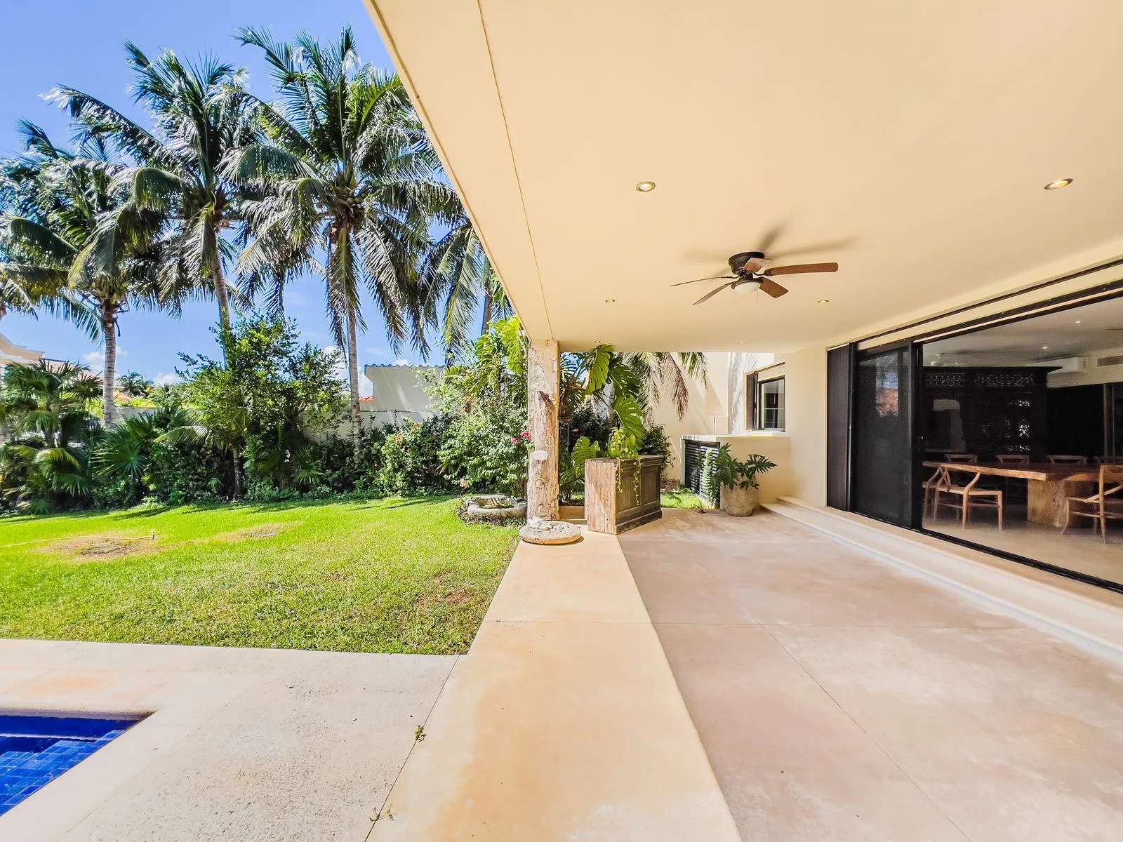 On one of the most exclusive streets in Puerto Aventuras, just three minutes from the school and commercial area, this elegant residence offers 610 square meters of construction on an 855 square meter plot. Its design combines spaciousness, functionality, and a direct connection with the nautical environment of the community.