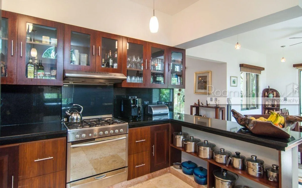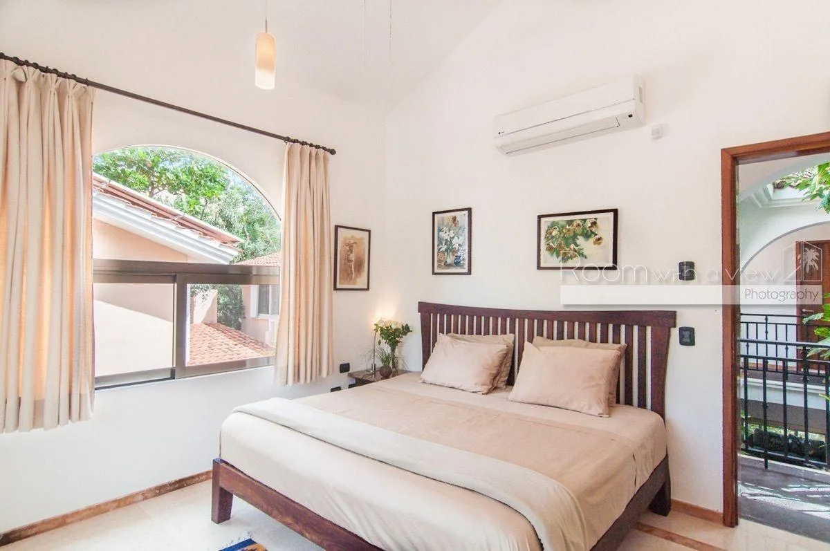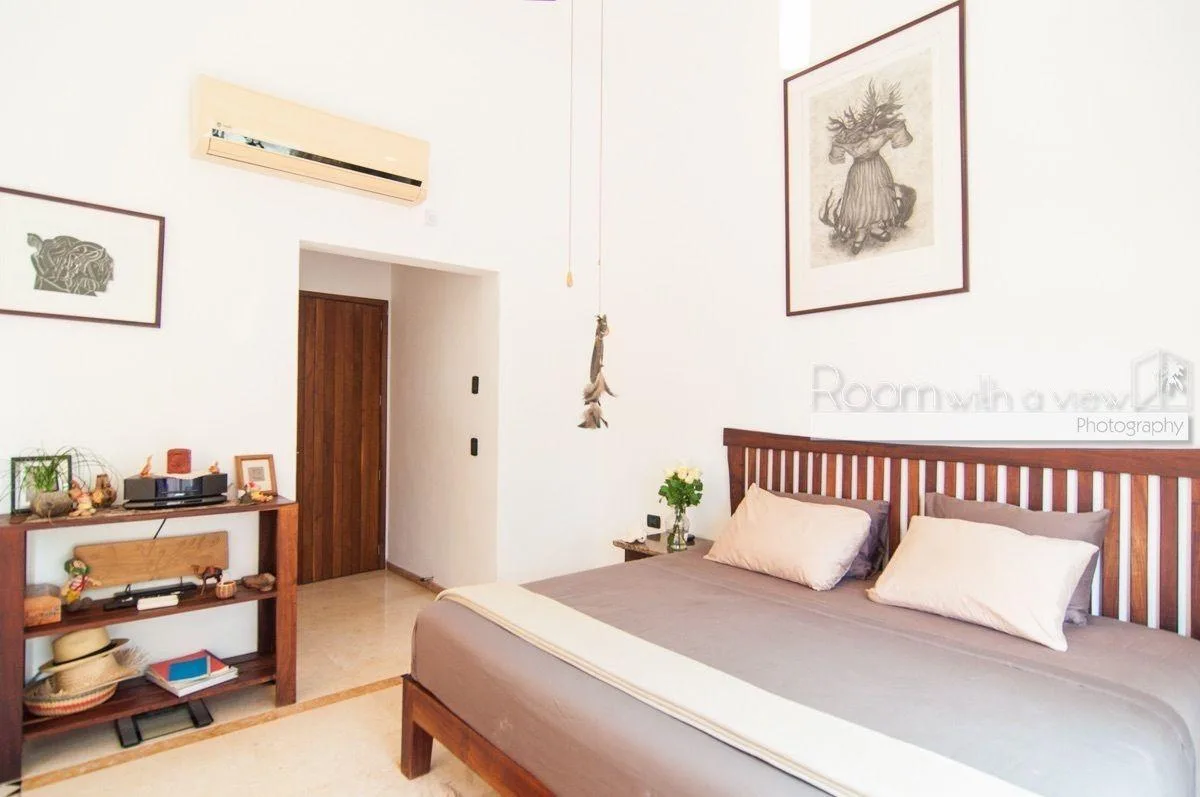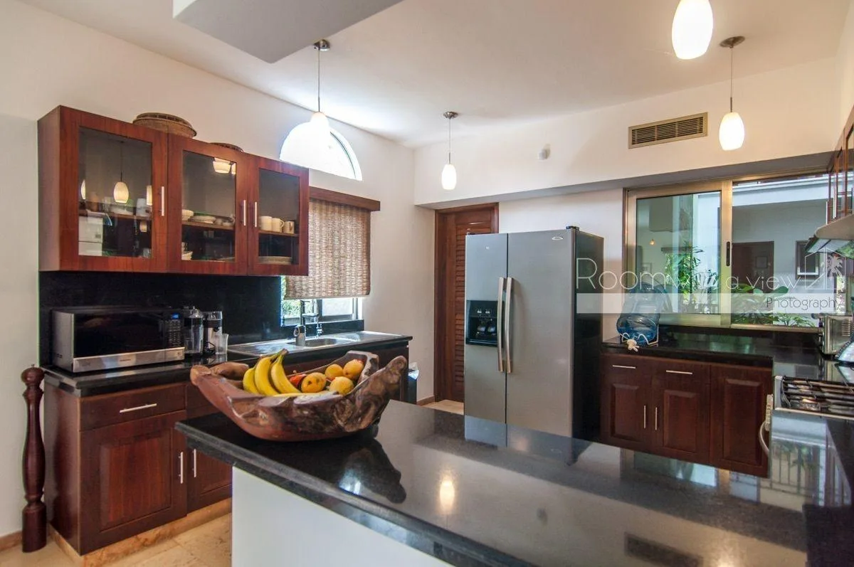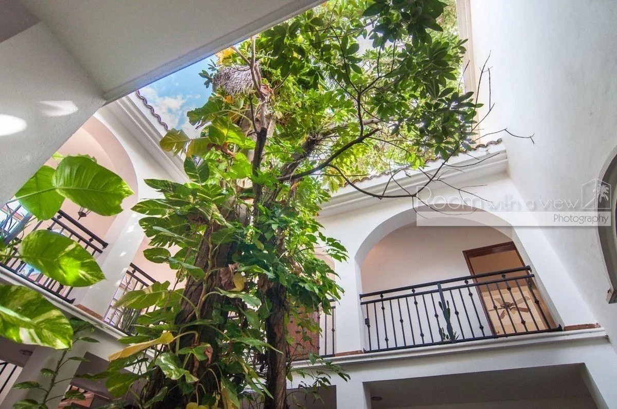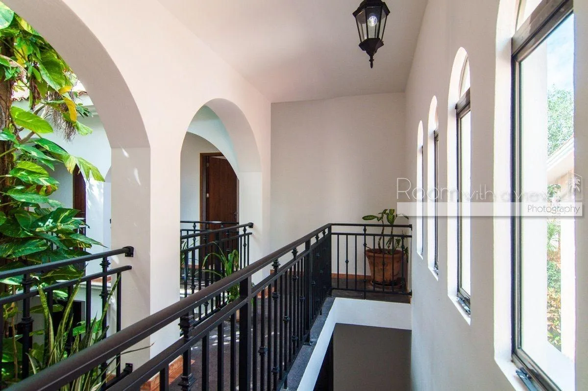 This expansive 6-bedroom home features ample natural light and an open-air atrium with a large tree and a fountain. The main floor includes a bright living room, a dining area, and a full kitchen with a breakfast bar and premium appliances. Finishes consist of high-quality natural materials such as Tzalam wood, marble, granite, and Cantera stone. The upstairs bedrooms open onto private balconies with sweeping views. The home is equipped with solar panels, a dedicated water purification and softening system, ceiling fans, air conditioning, hurricane shutters, and an alarm system.