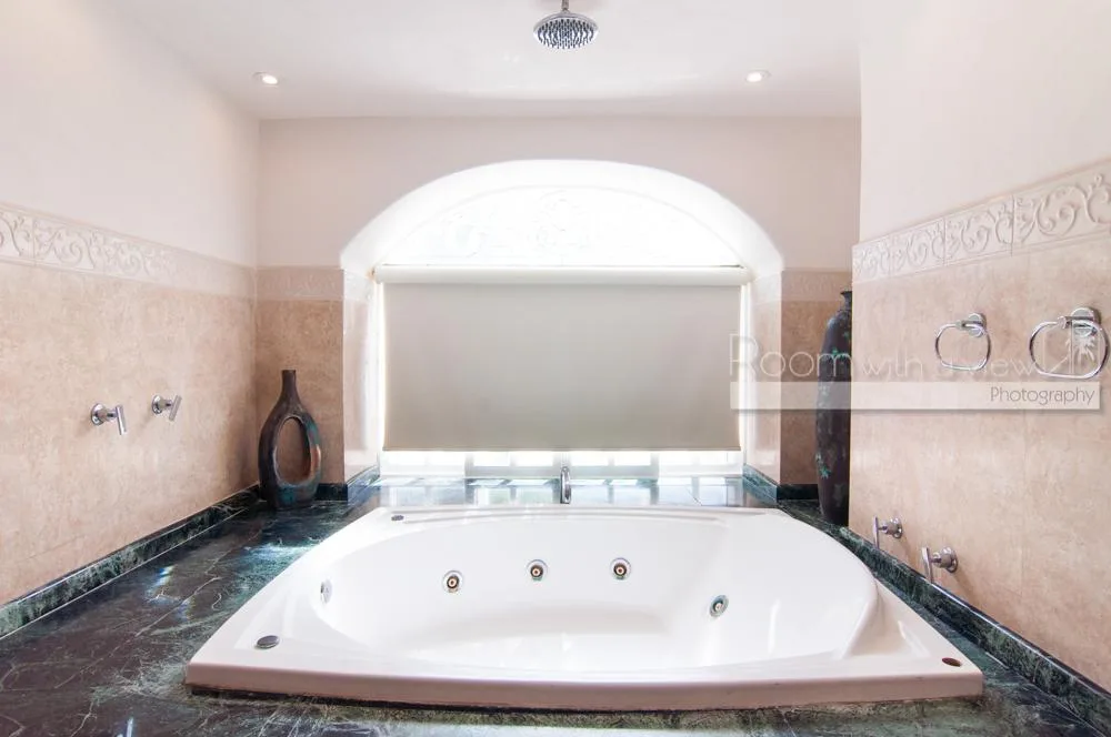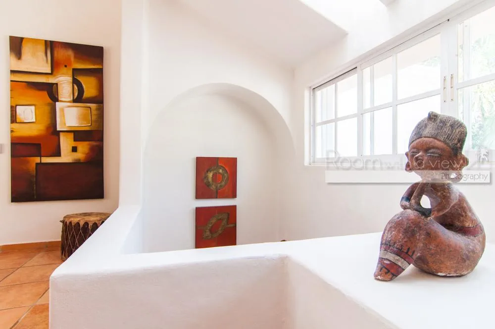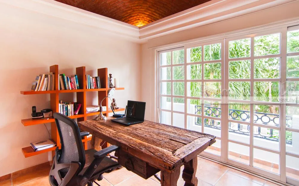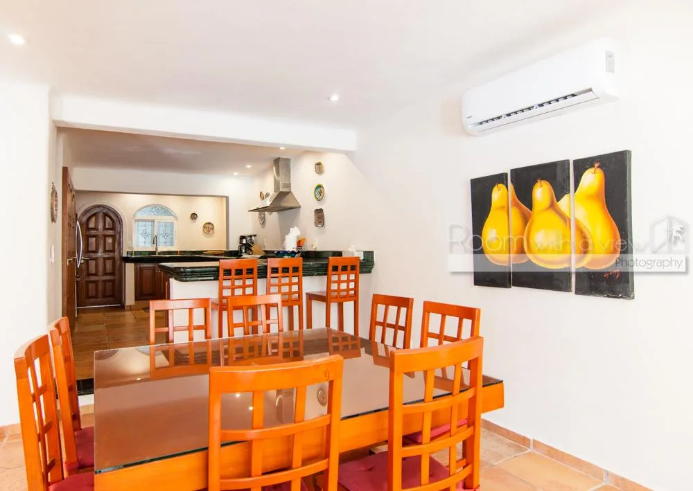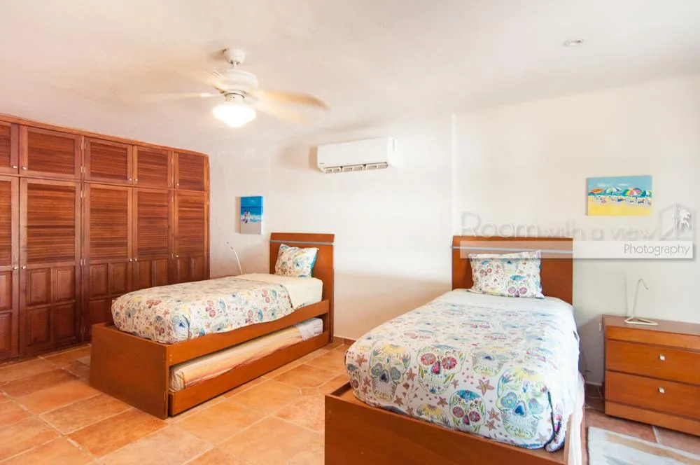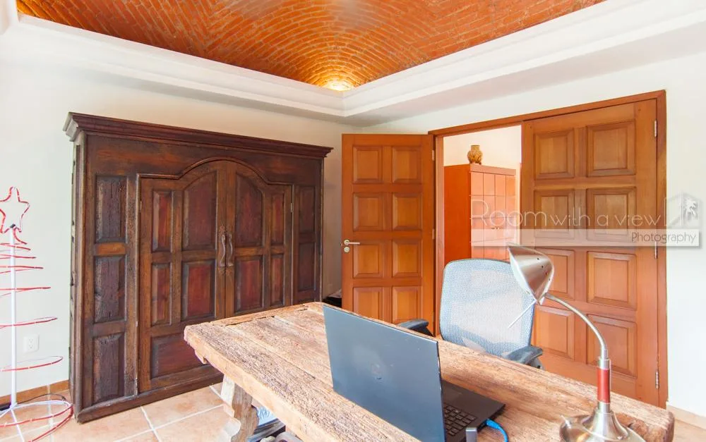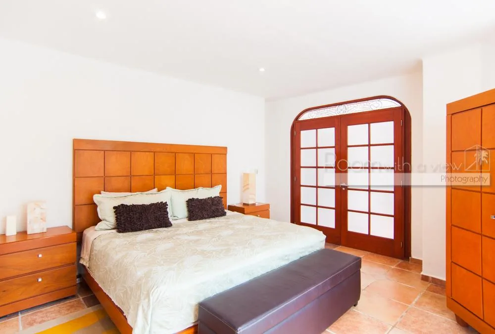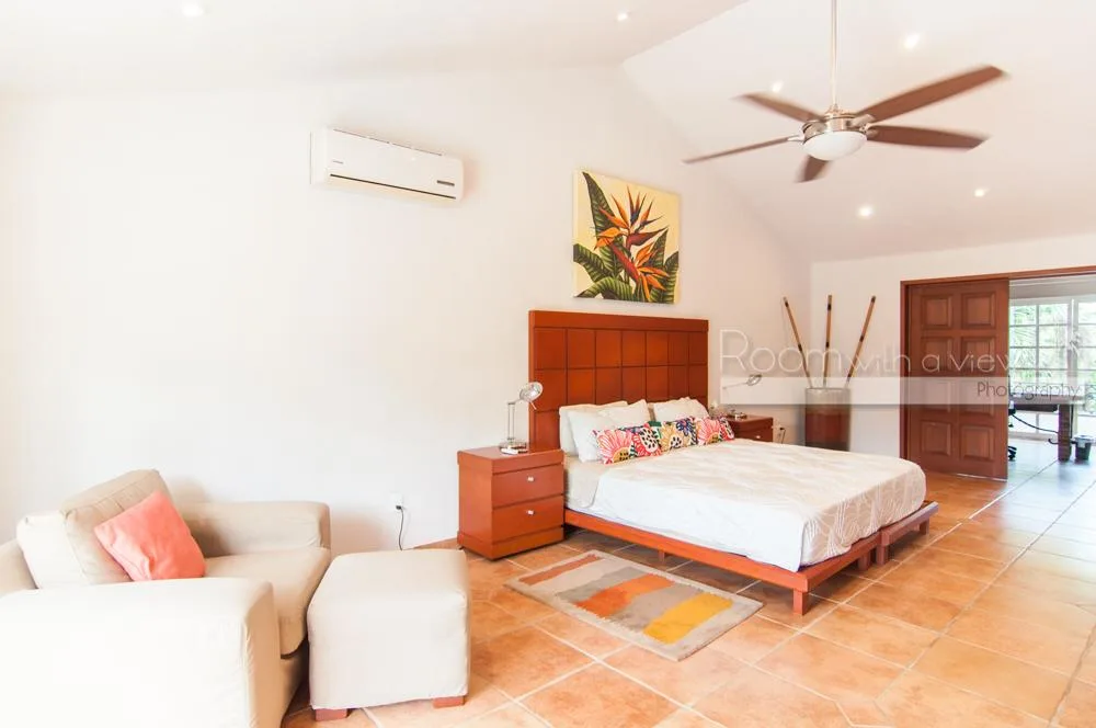 The updated two-story villa features cathedral ceilings and skylights that fill the spacious interiors with natural light. The main house includes 4 bedrooms and 3. 5 bathrooms. A separate 1-bedroom, 1-bathroom guest casita provides additional accommodation.
