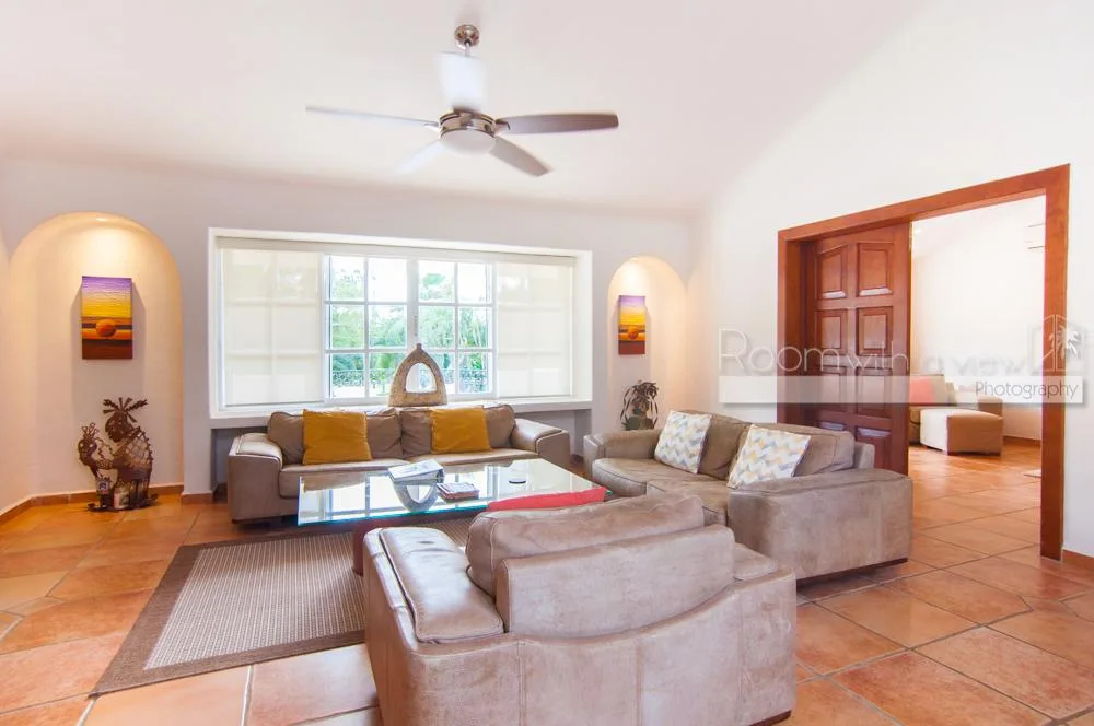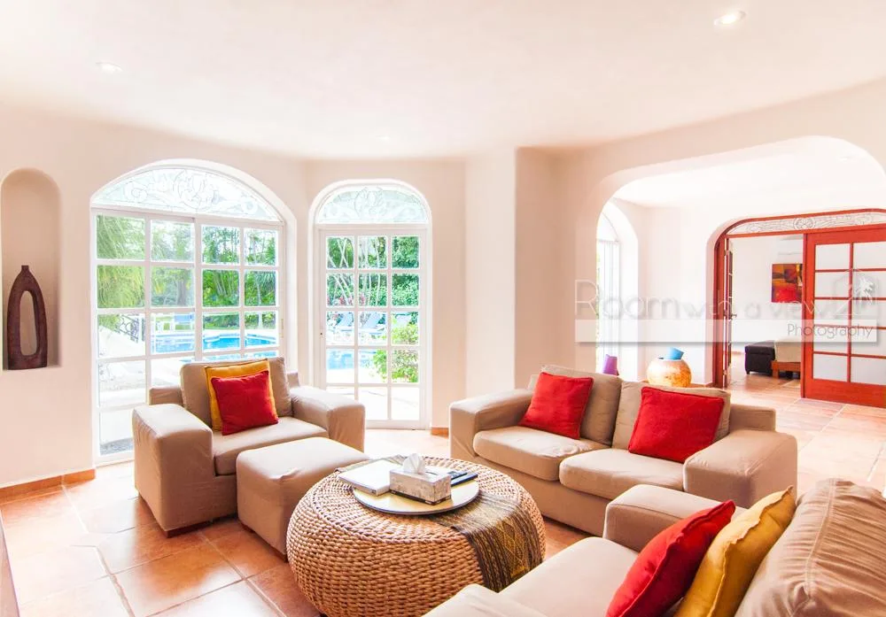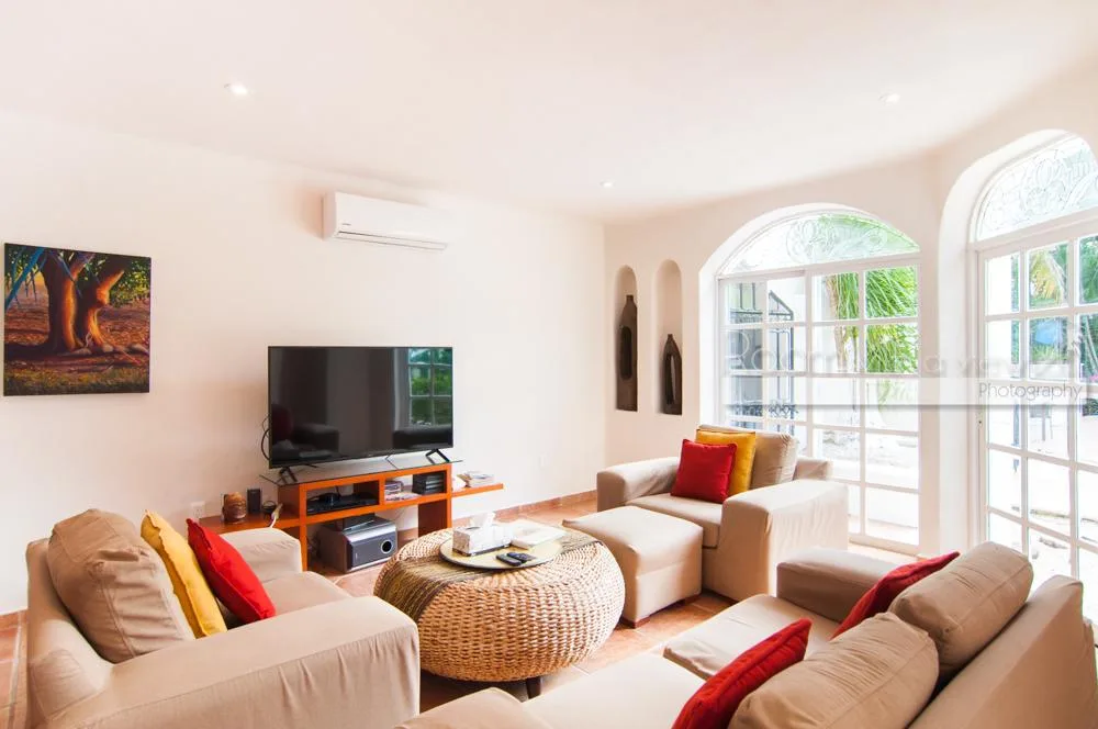 This luxury villa is located within an exclusive, gated golf course community in the picturesque seaside setting of Puerto Aventuras and Soliman Bay on the Riviera Maya coast. The serene area is approximately 40 minutes north of Tulum, 30 minutes south of Playa del Carmen, and 60 minutes from the airport, with various local amenities and attractions within a short drive.